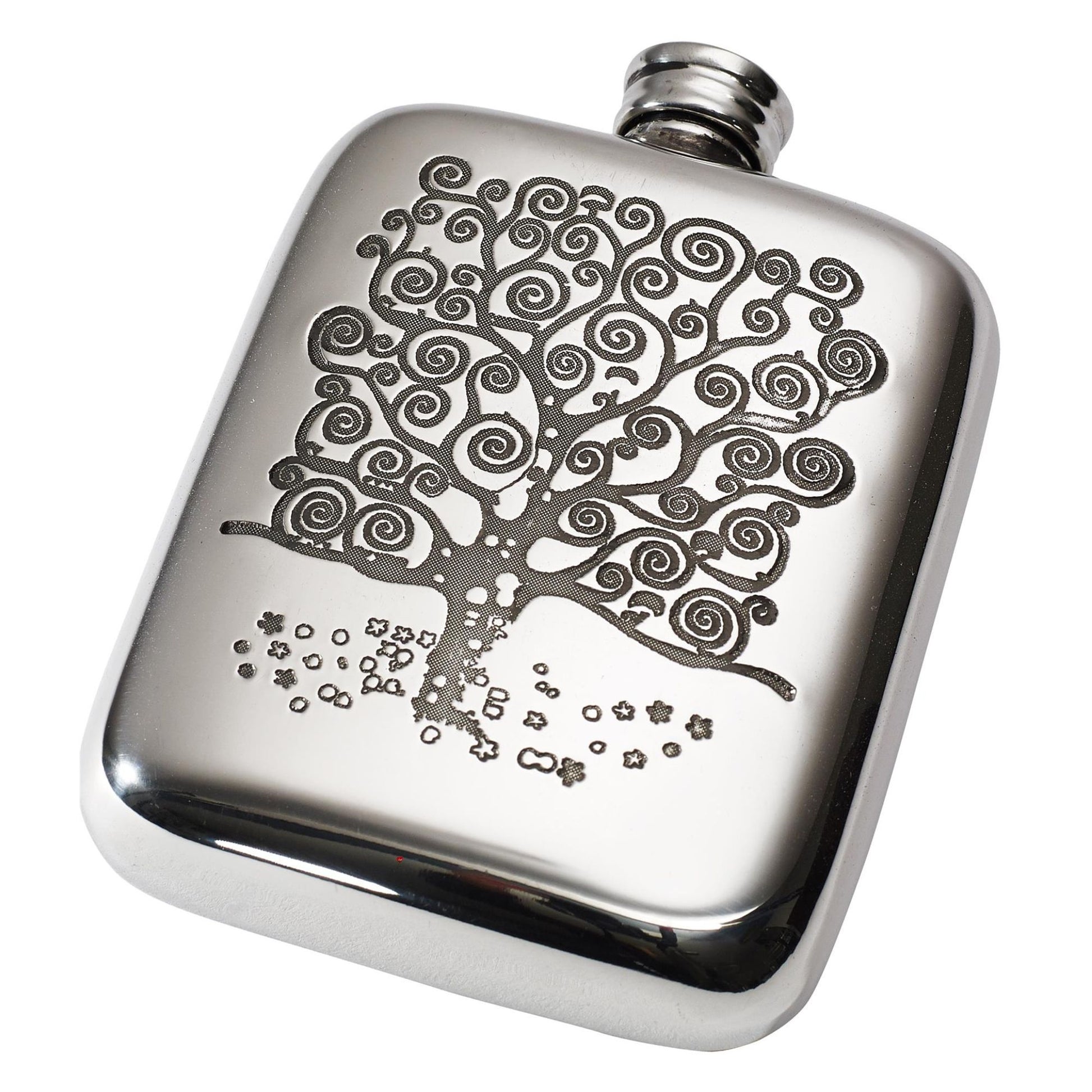 4oz Flask Pewter with Tree of Life Design Polished Screw Perfect for Engraving