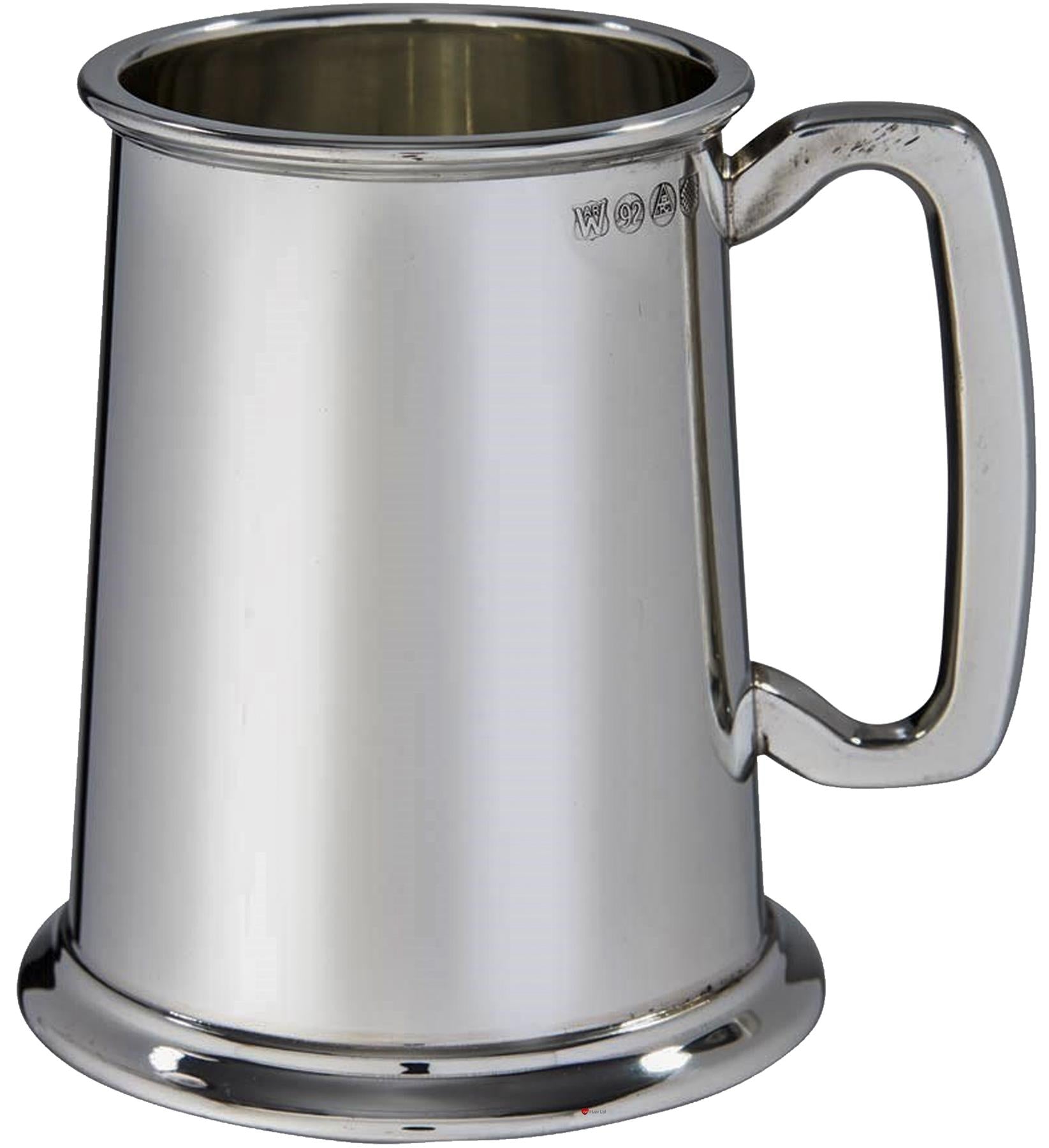 1 Pint Pewter Plain Tankard Square Handle and Glass Base Perfect for Engraving