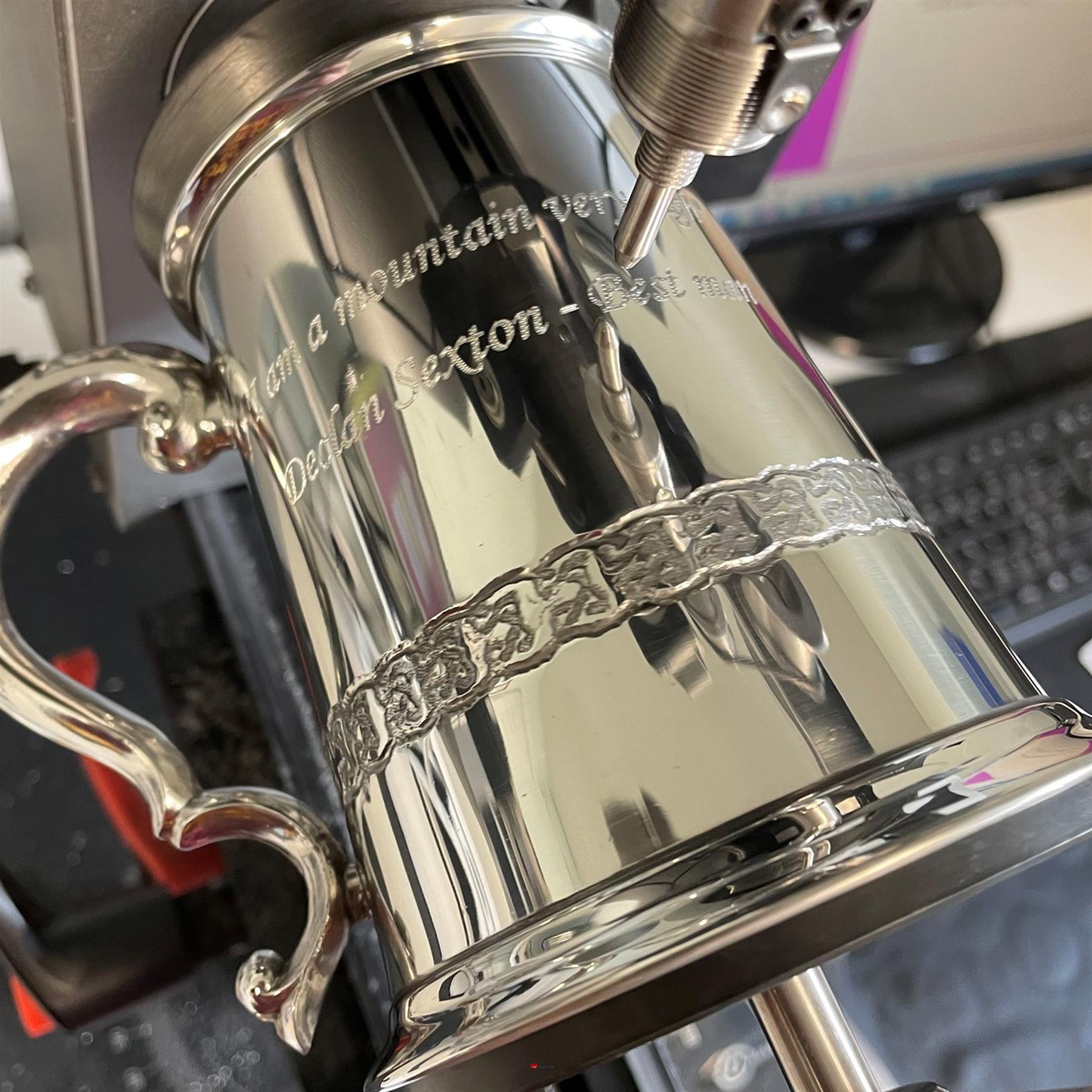 Standard 1 pint capacity pewter tankard ideal for engraving. Supplied in a carton box.