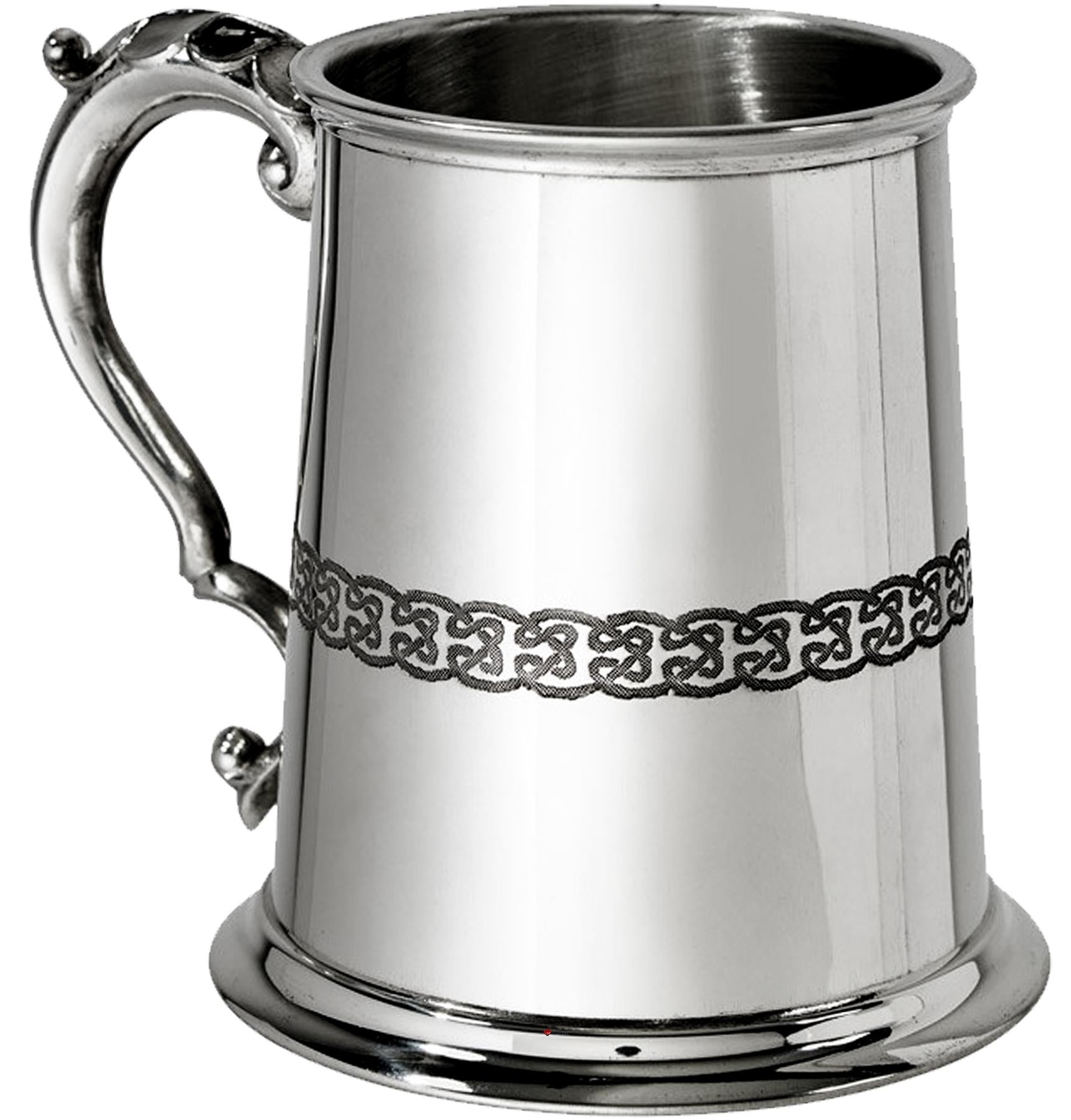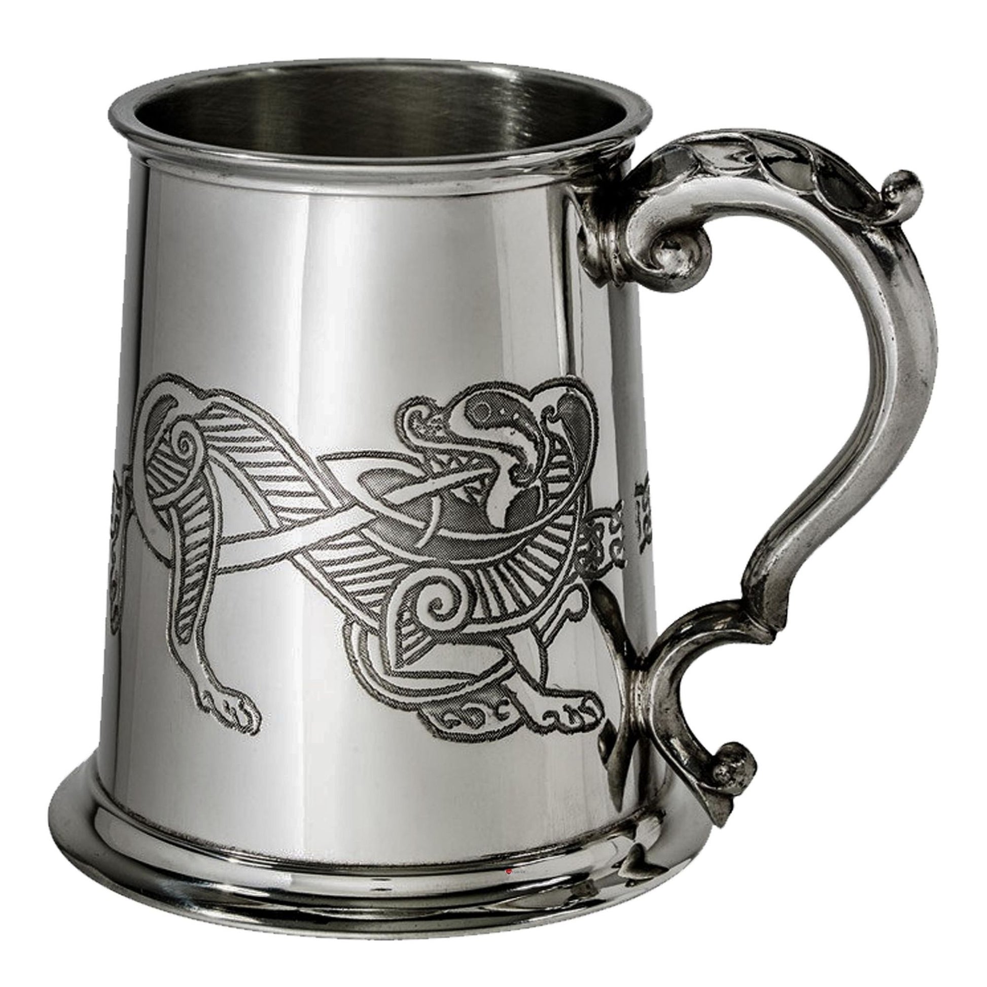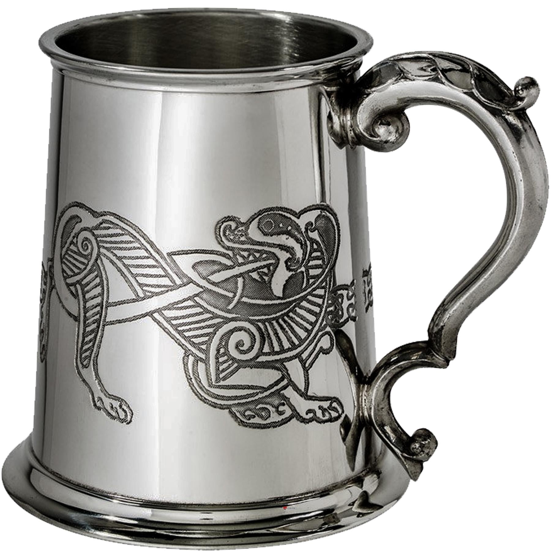 1 Pint Pewter Tankard With Celtic Lion Design Scroll Handle