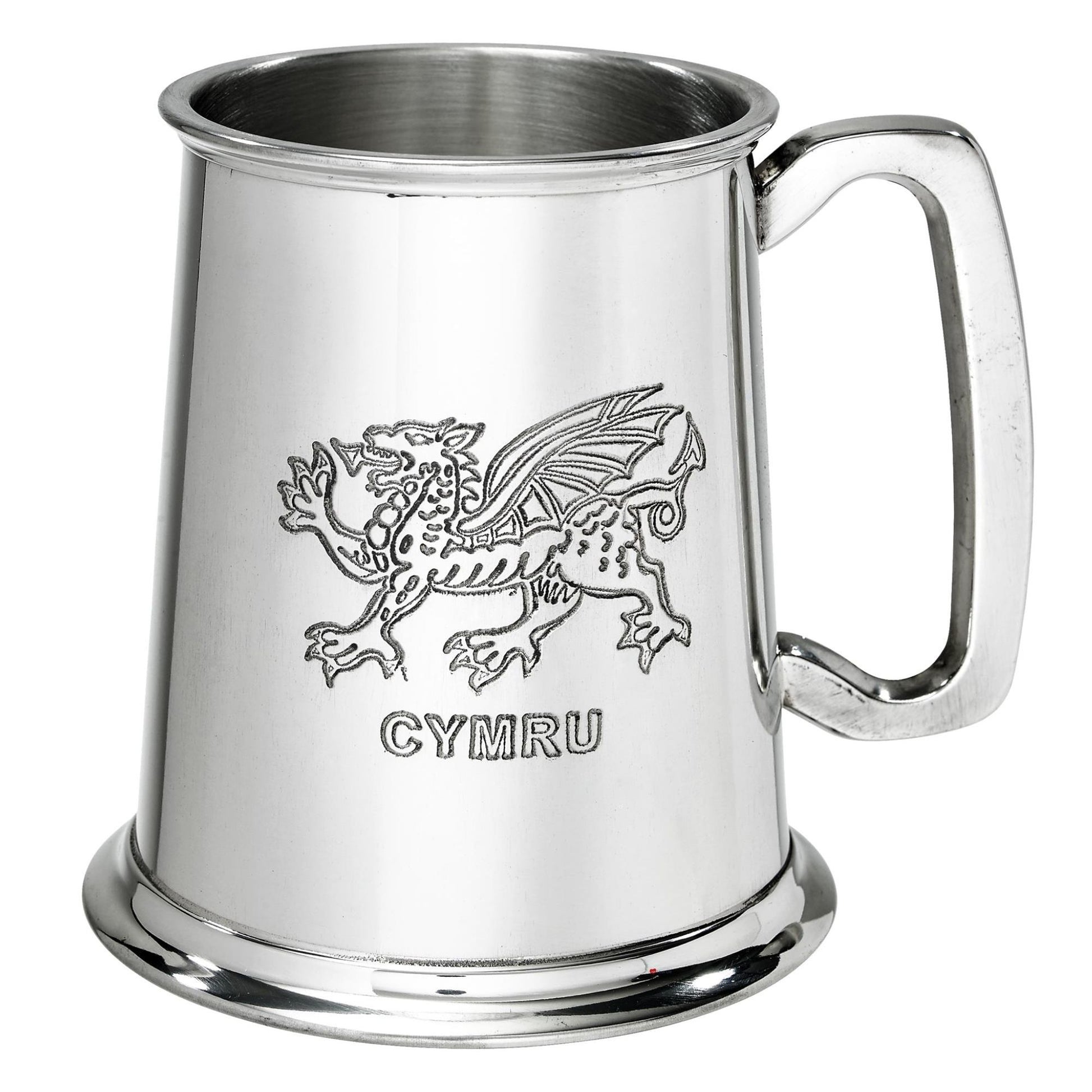 1 Pint Pewter Tankard Welsh Dragon Design Square Handle Perfect for Engraving