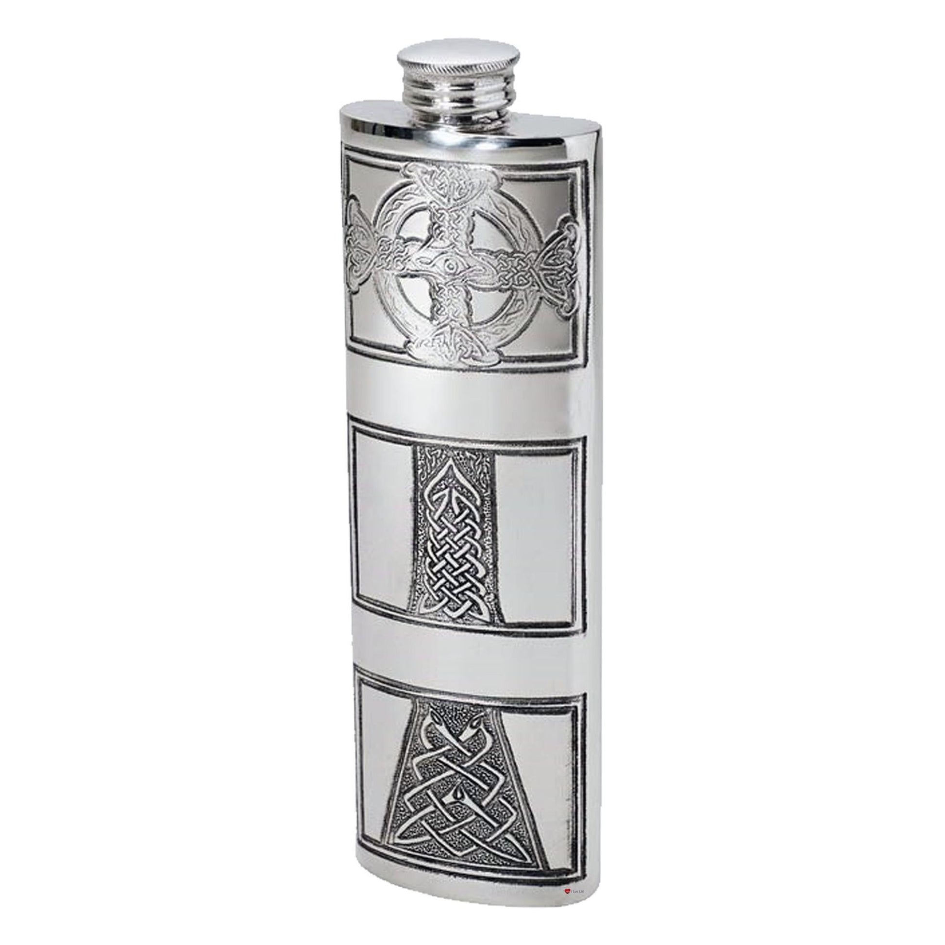 3oz Pewter Flask Embossed with Celtic Cross Polished Screw Perfect for Engraving