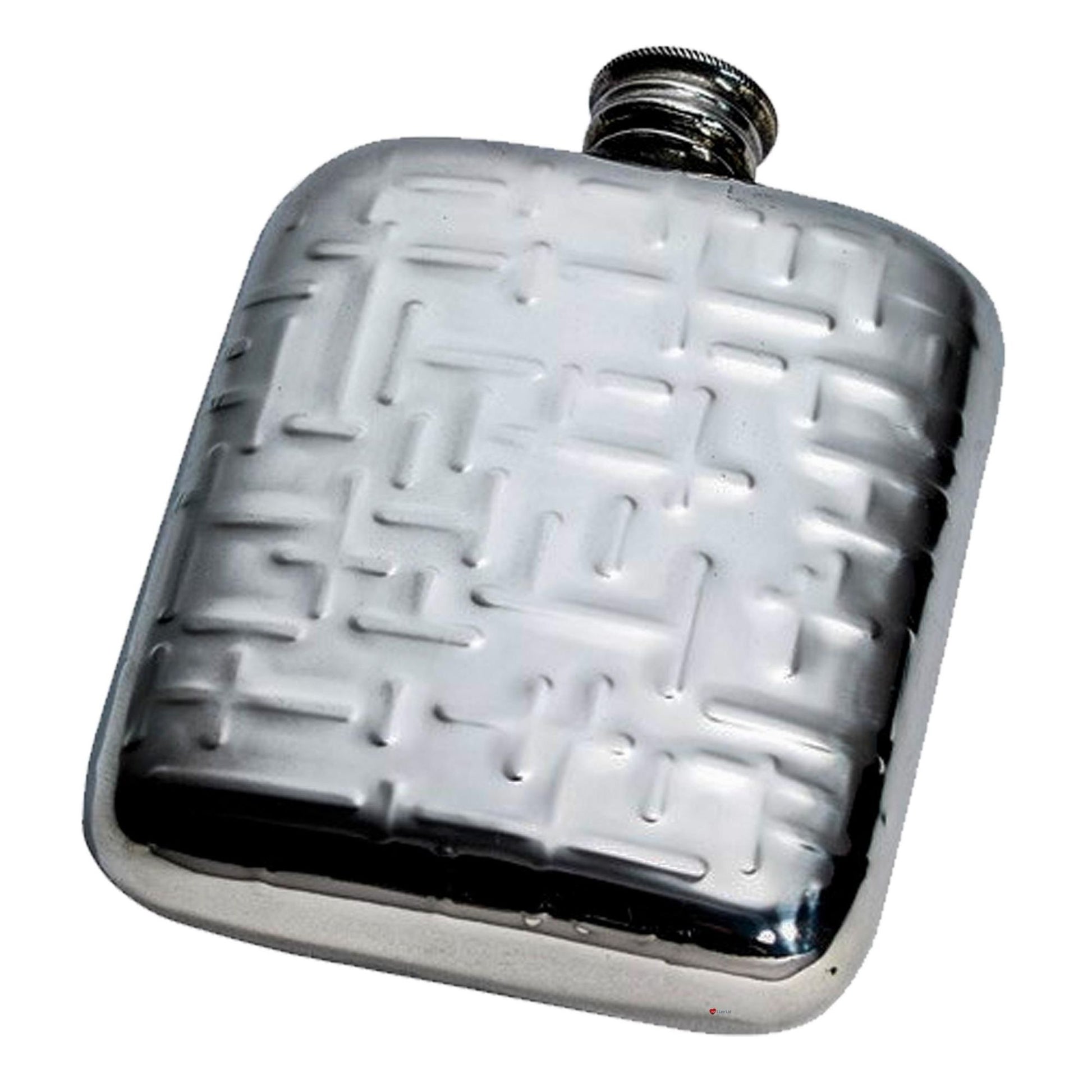 4oz Pewter Flask Embossed Design Metropolitan Pattern Polished Screw Top
