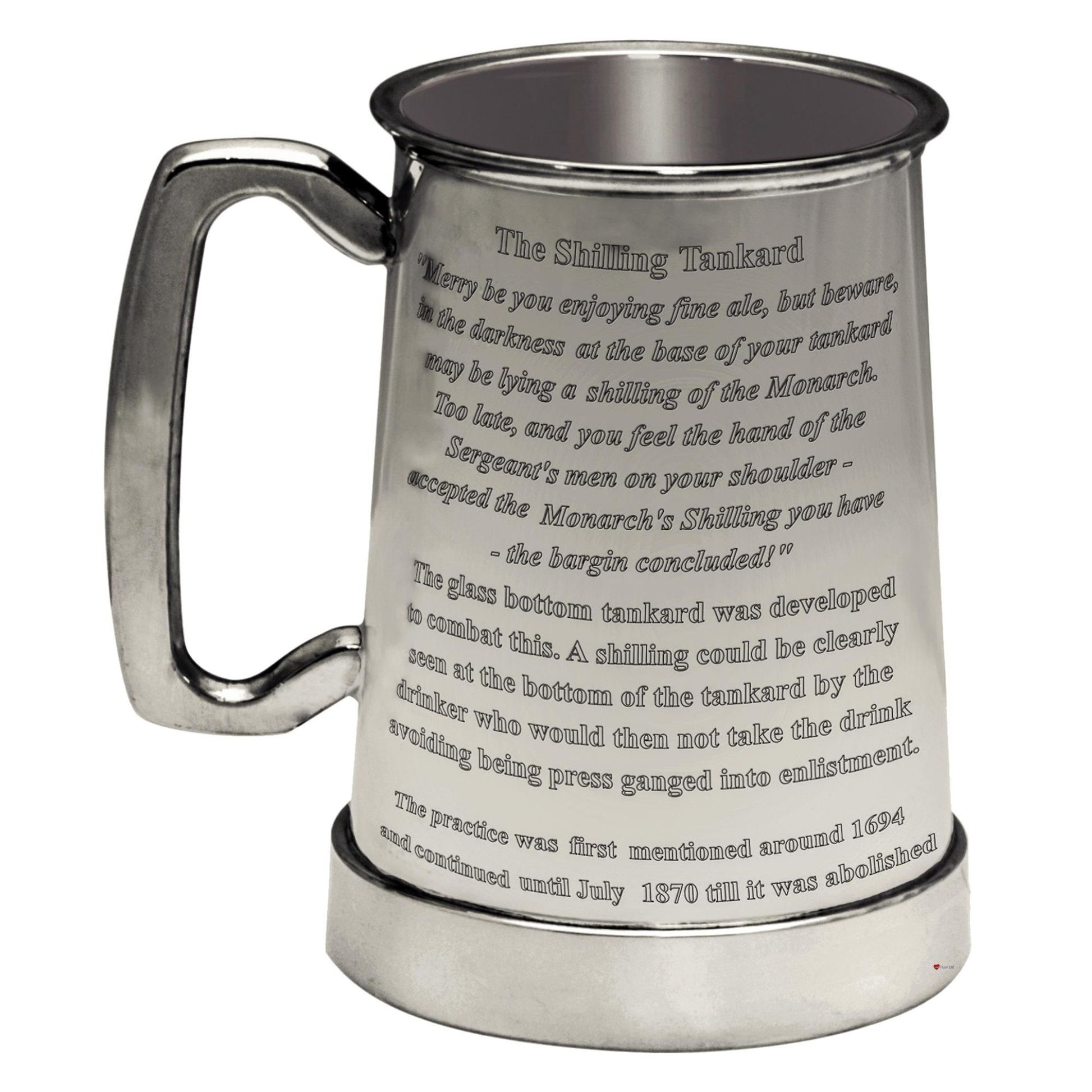 This attractive one-pint pewter tankard is just one of the most legendary and historically substantial tankards in our range telling as it does the story of how Naval press gangs used to trick drinkers to enlist using glass bottomed tankards.