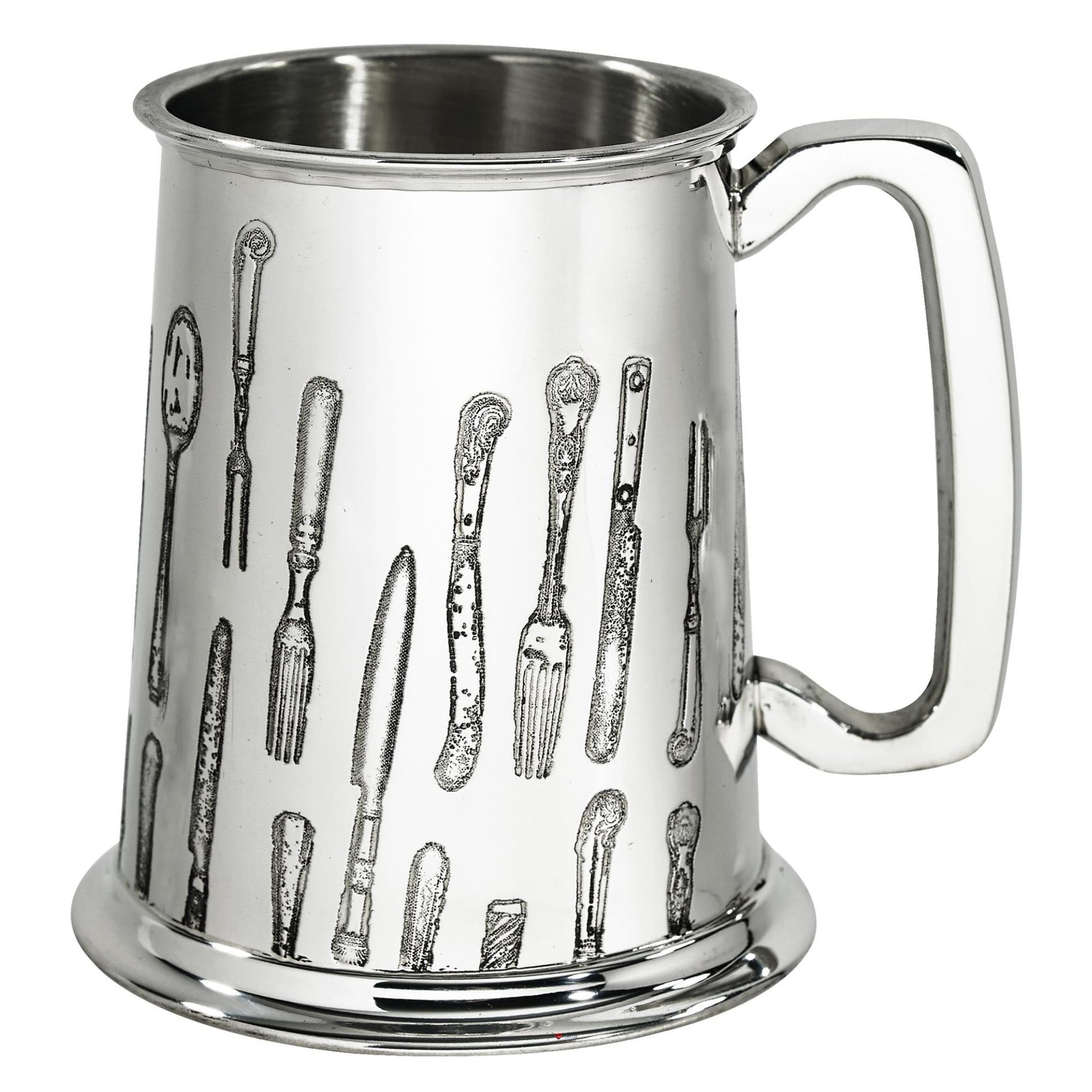 1 Pint Pewter Tankard with Knife, Fork, Spoon Design Handle Pure Gauge Beer