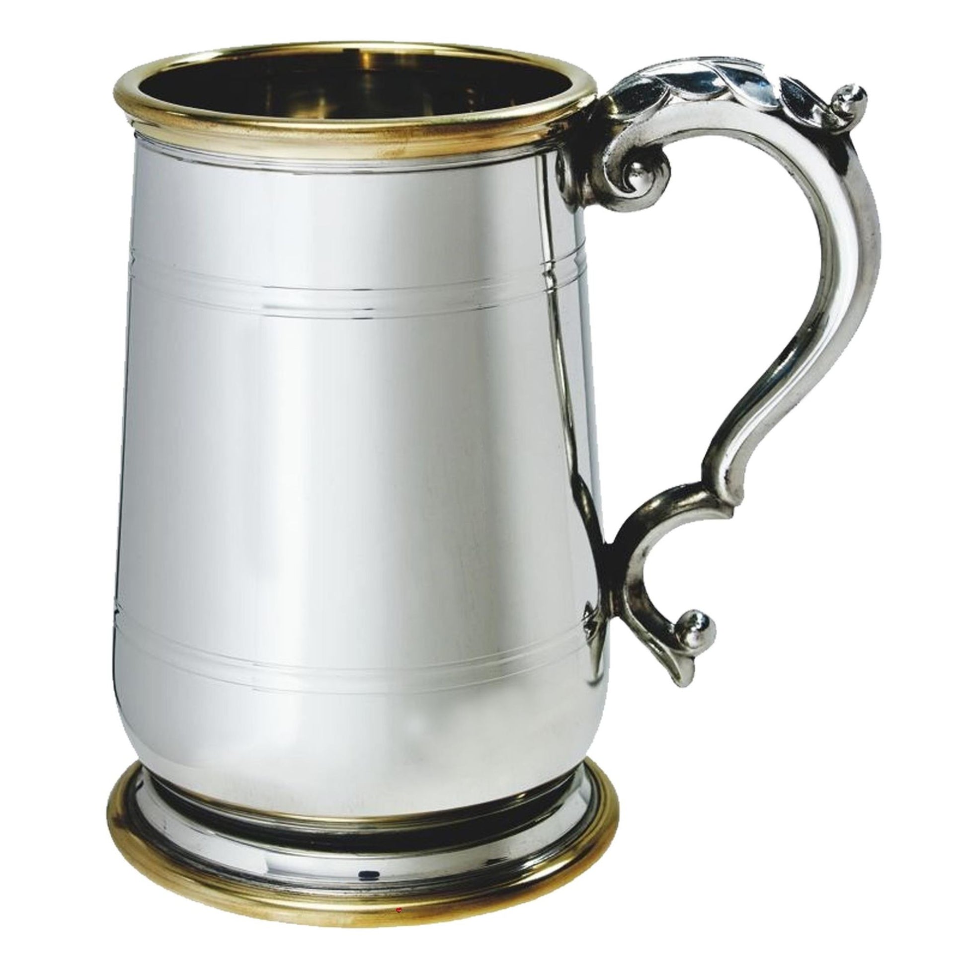 Pewter Tankard 1 Pint Hallam Style Jacobean Brass Detail Perfect for Engraving
