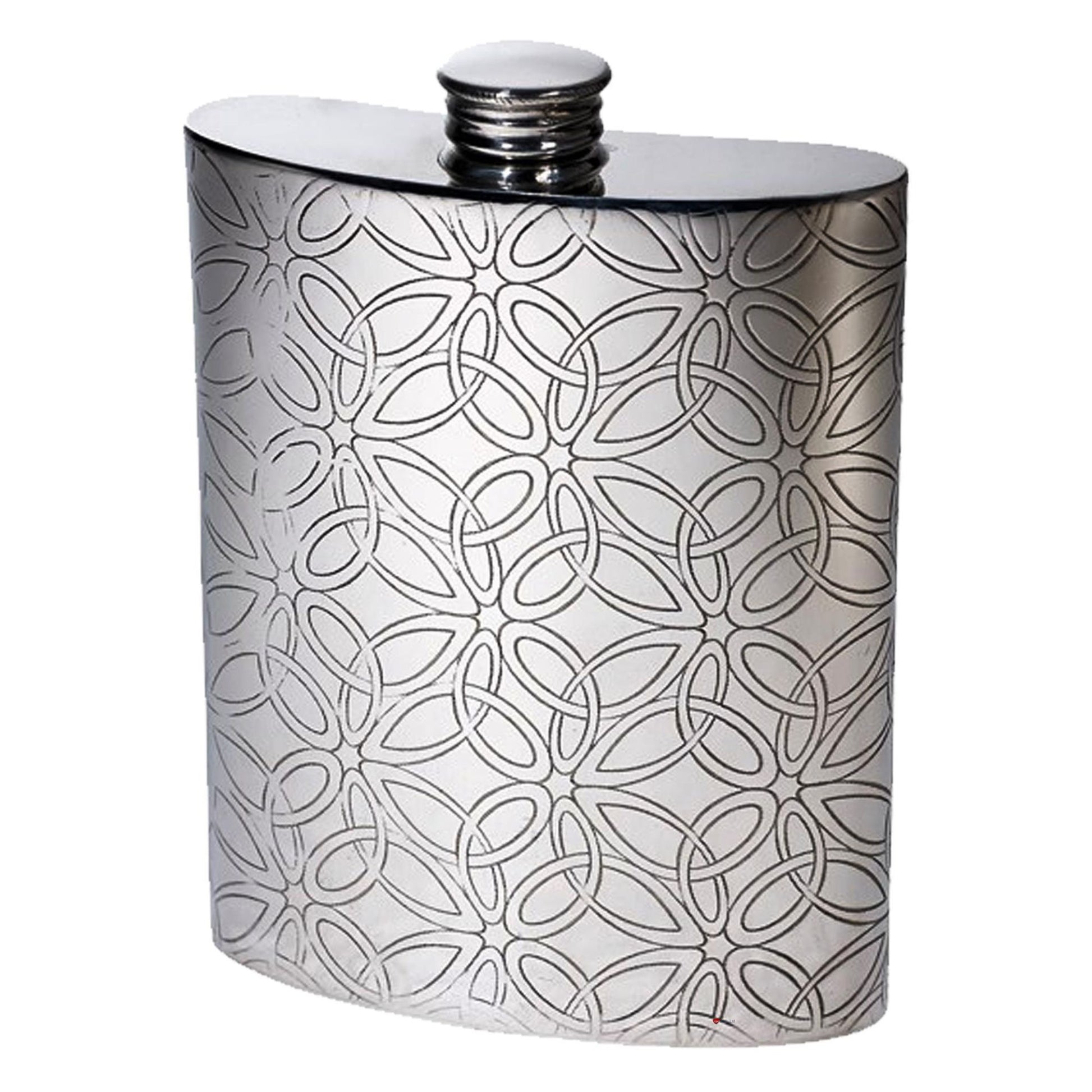 6oz Pewter Hip Flask Triquetra Pattern Bright Polished Finish Screw Top