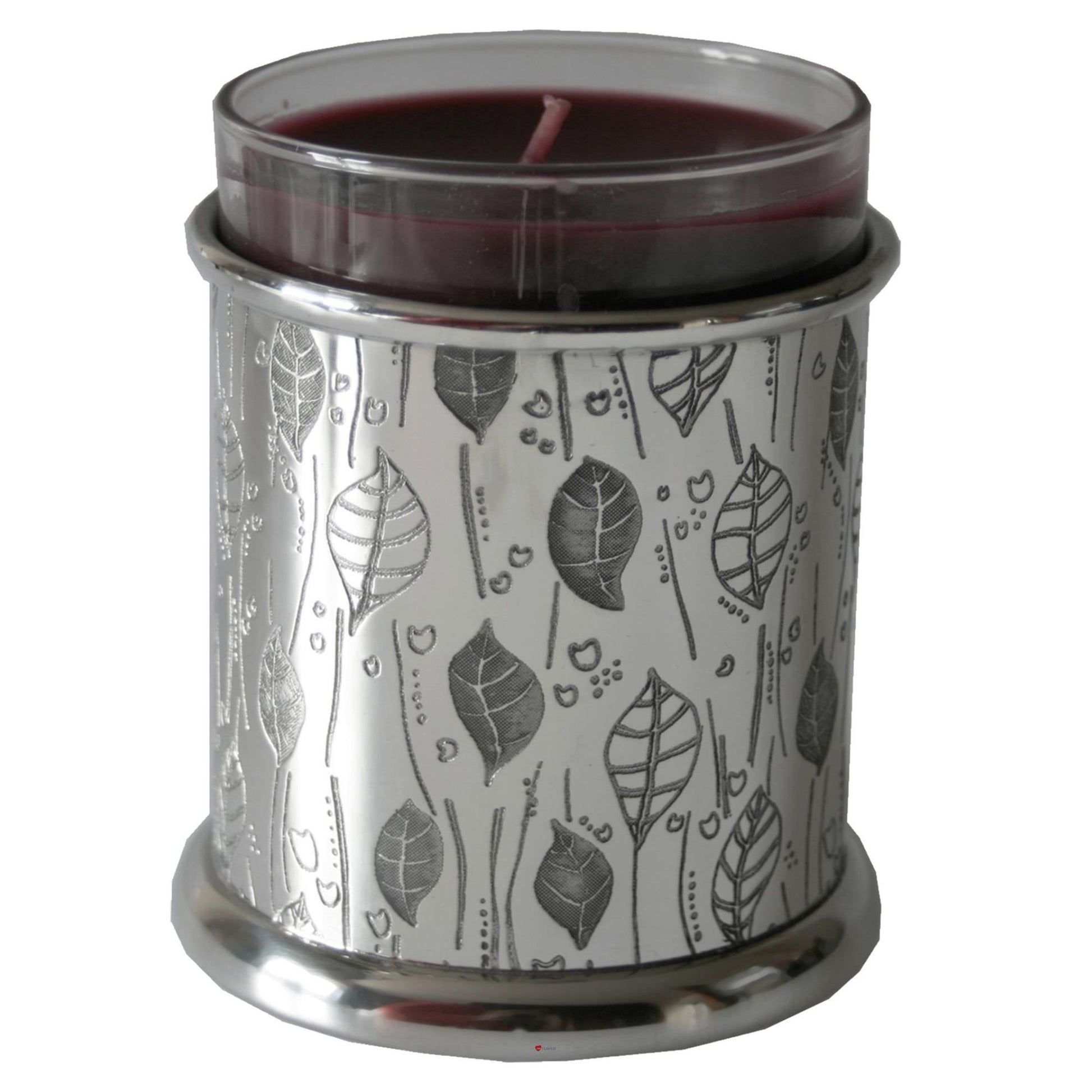 Candle Votive Holder with Leaf Design Pewter Comes with Candle Bright Polished