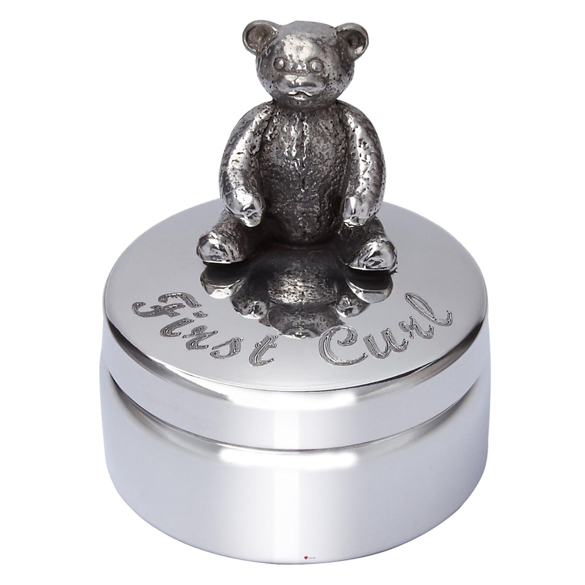 Child's First Curl Pewter Trinket Box Teddy Bear on Top Perfect for Engraving