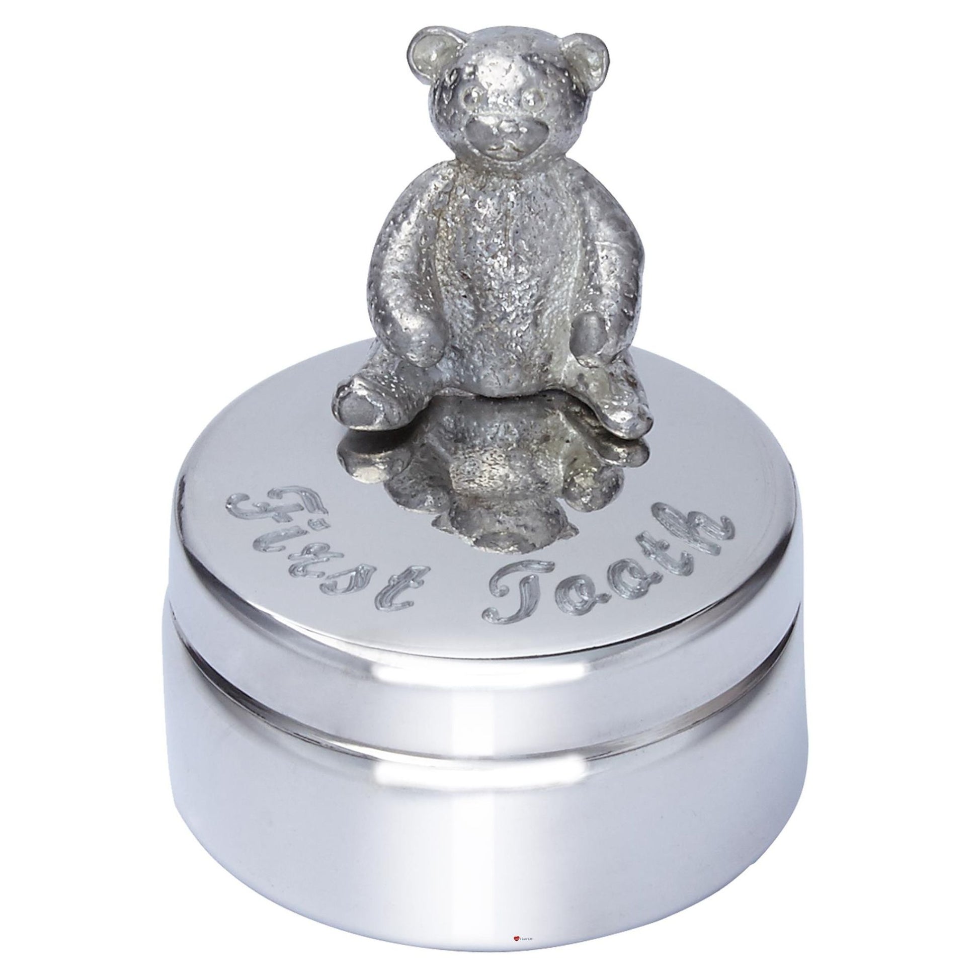 Child's First Tooth Pewter Trinket Box Teddy Bear on Top Perfect for Engraving
