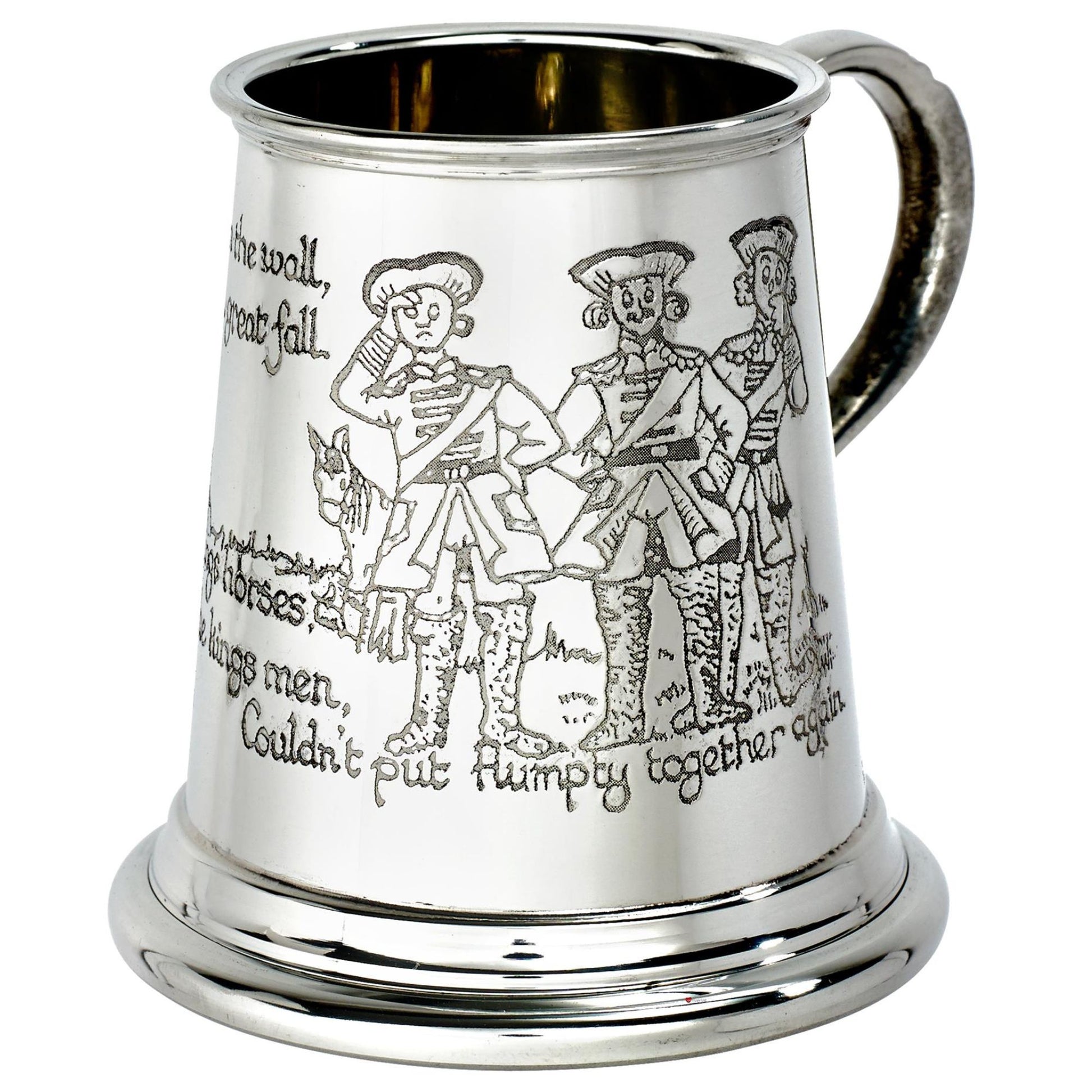 Quarter Pint Mug Humpty Dumpty Christening Gift Pewter Tankard Scroll Handle