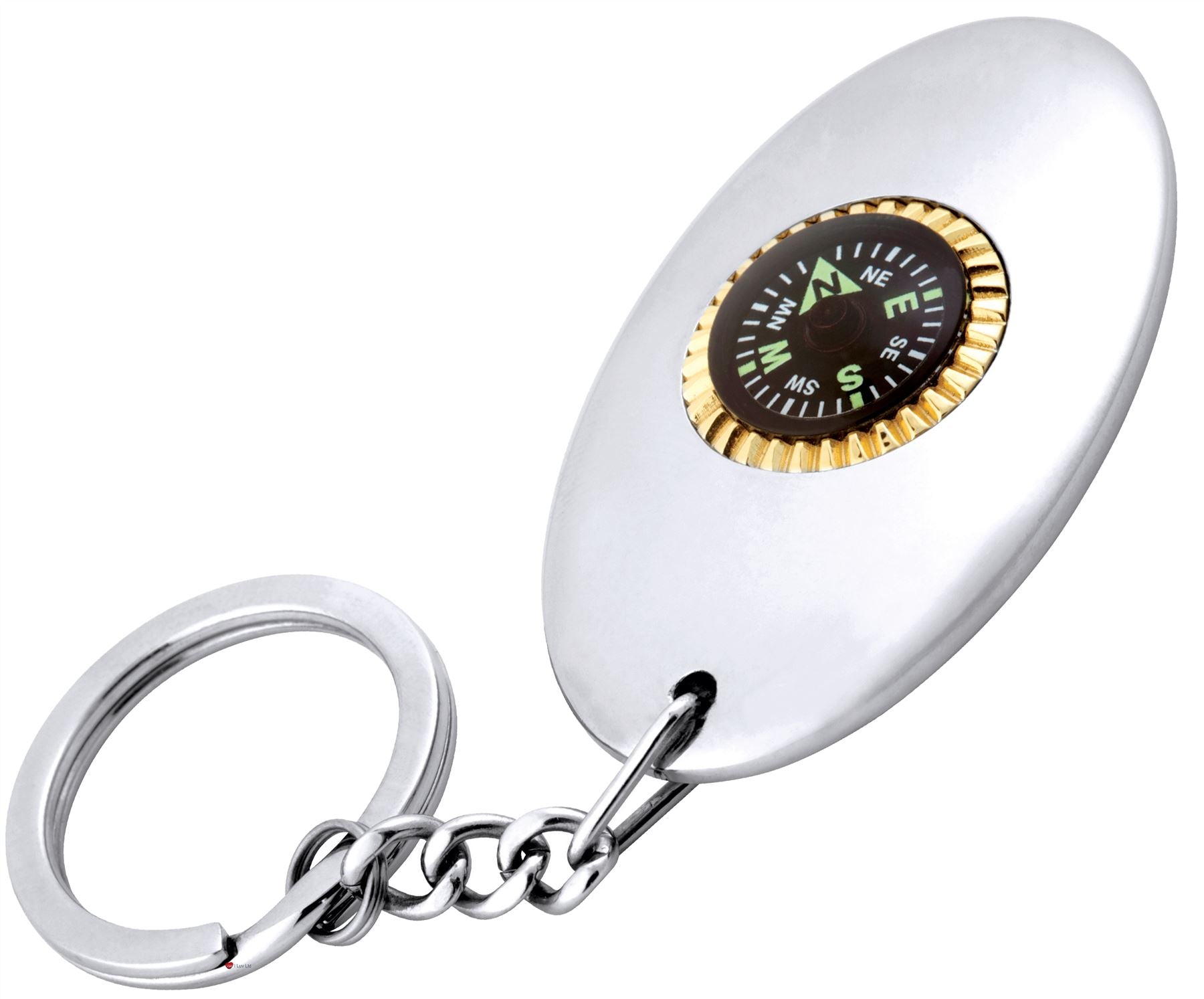 Keyring Compass Stainless Steel and Gold Plate Gold Plated Bezel Oil-filled Compas Strong Keyring and Chain.