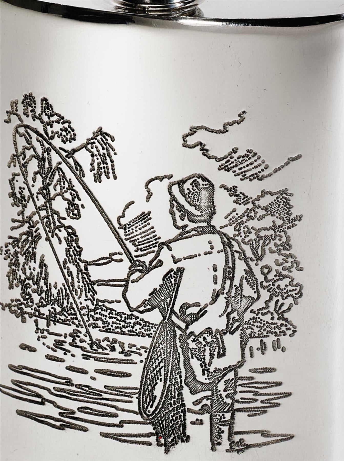 Kidney Shaped Flask 6oz Pewter with Rugby Scenes on Both Sides