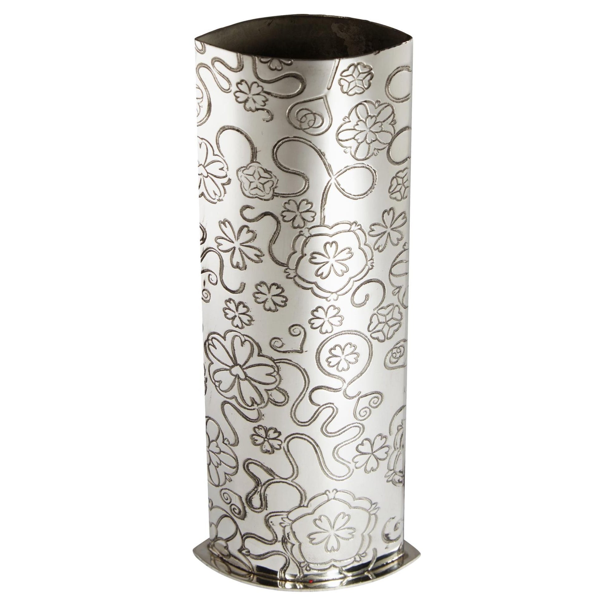 Large 10 inch Pewter Vase Embossed all over with Yorkshire Rose Pattern