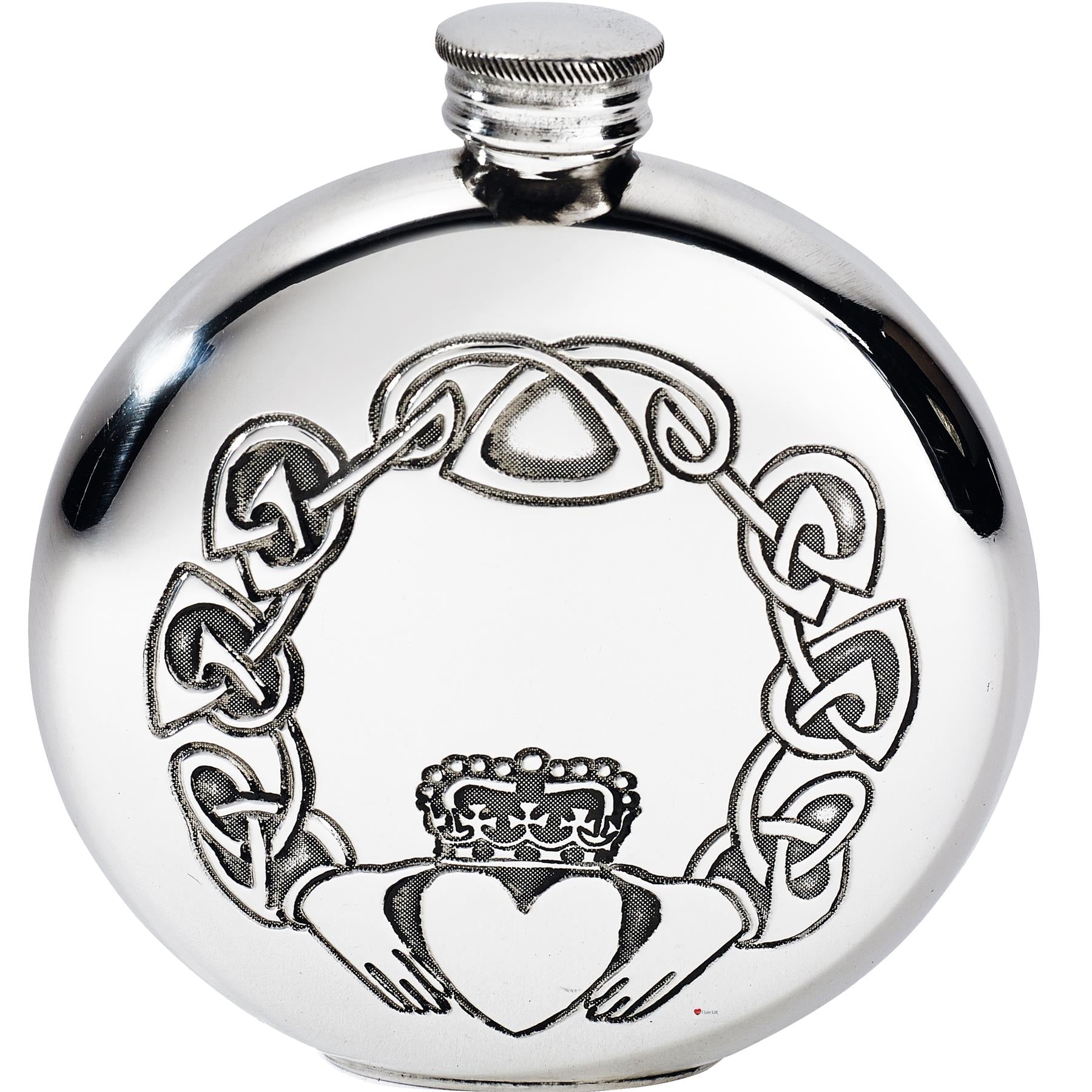 Large Sized 6oz Pewter Pocket Flask with Celtic Claddagh Design