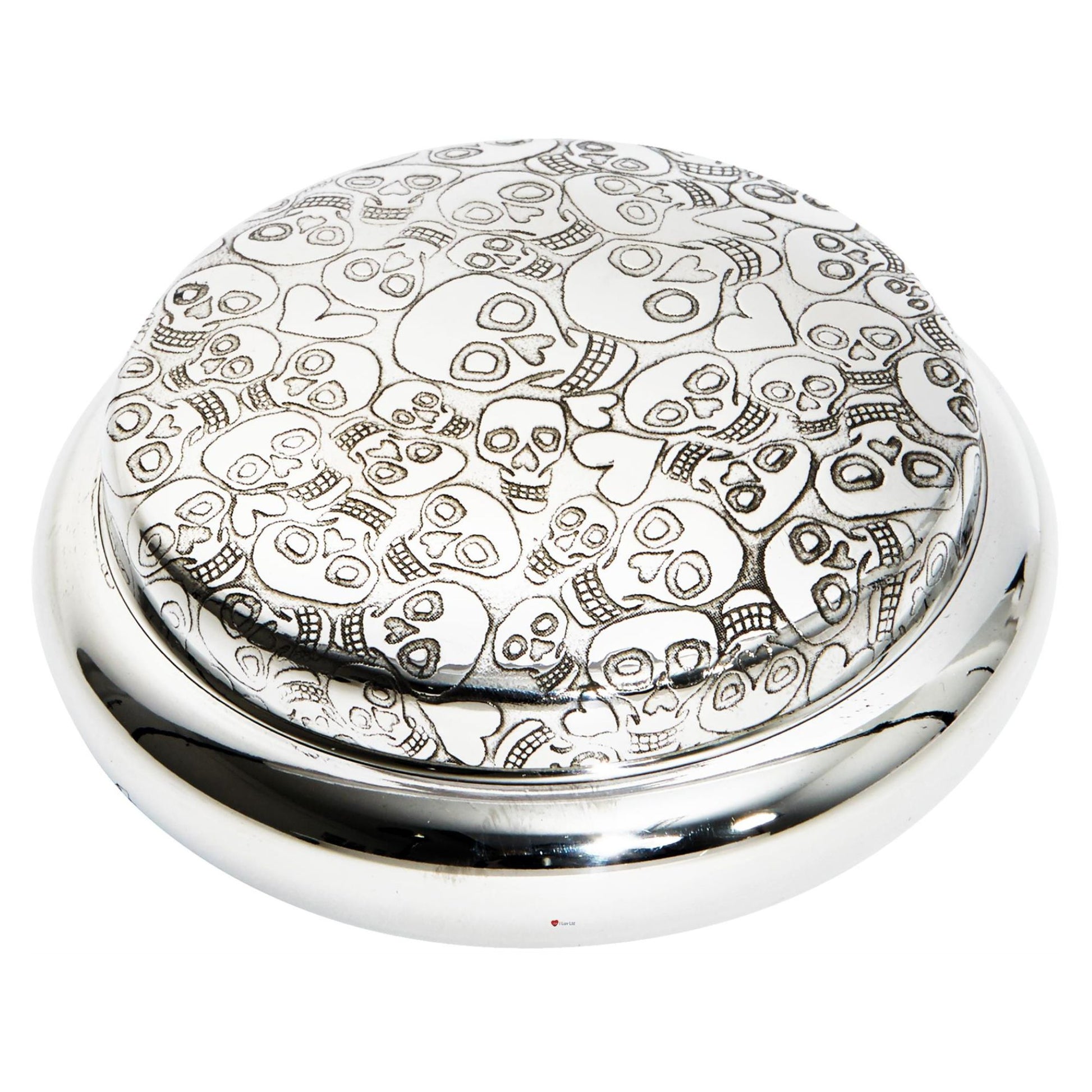 Pewter Trinket Box Embossed Love Skull and Heart Design on Lid Georgian Shaped