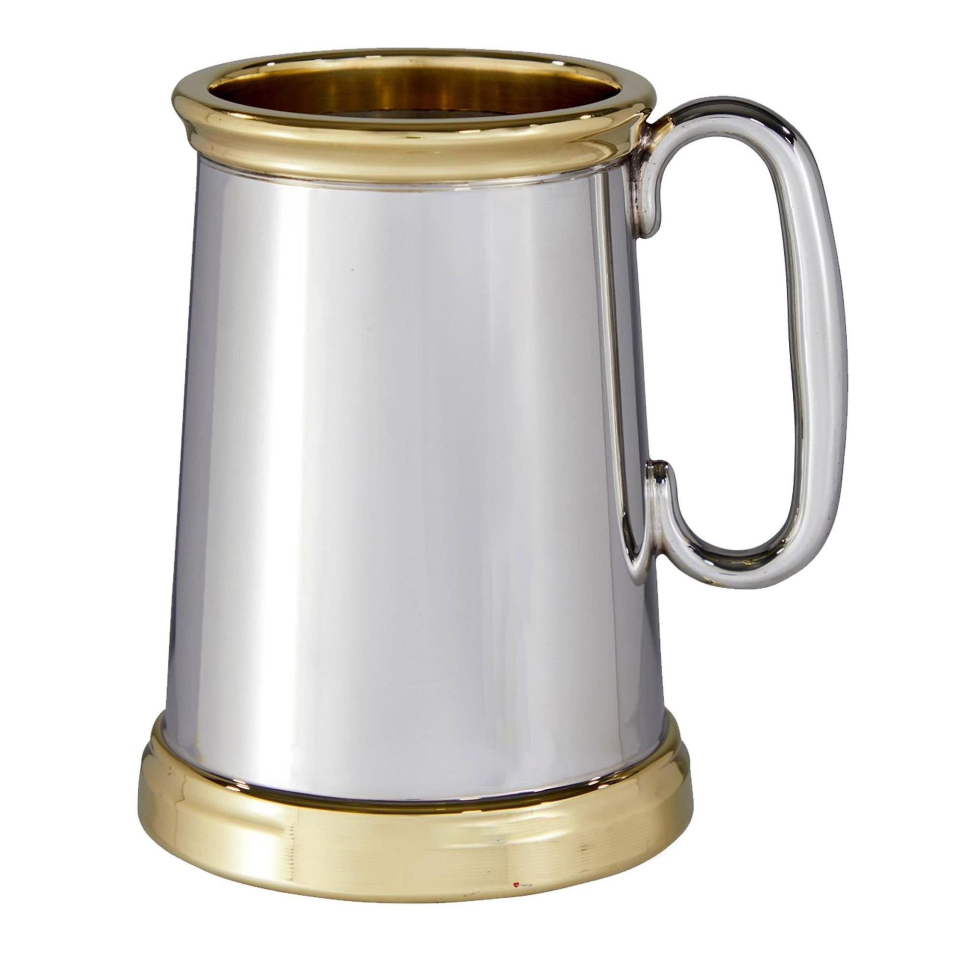 Pewter Heavy Tankard 1 Pint Wortley Brass Rim Base Detail Perfect for Engraving