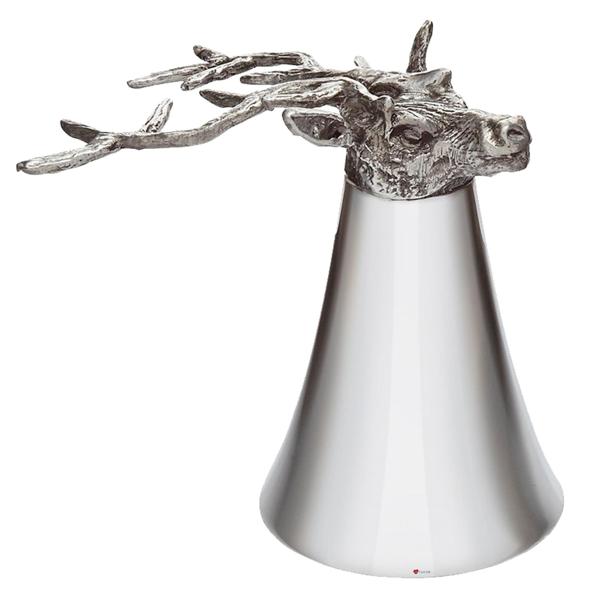 Pewter 5 oz Jigger Measure or Stirrup Cup with Stag Head Cast Pewter Stag