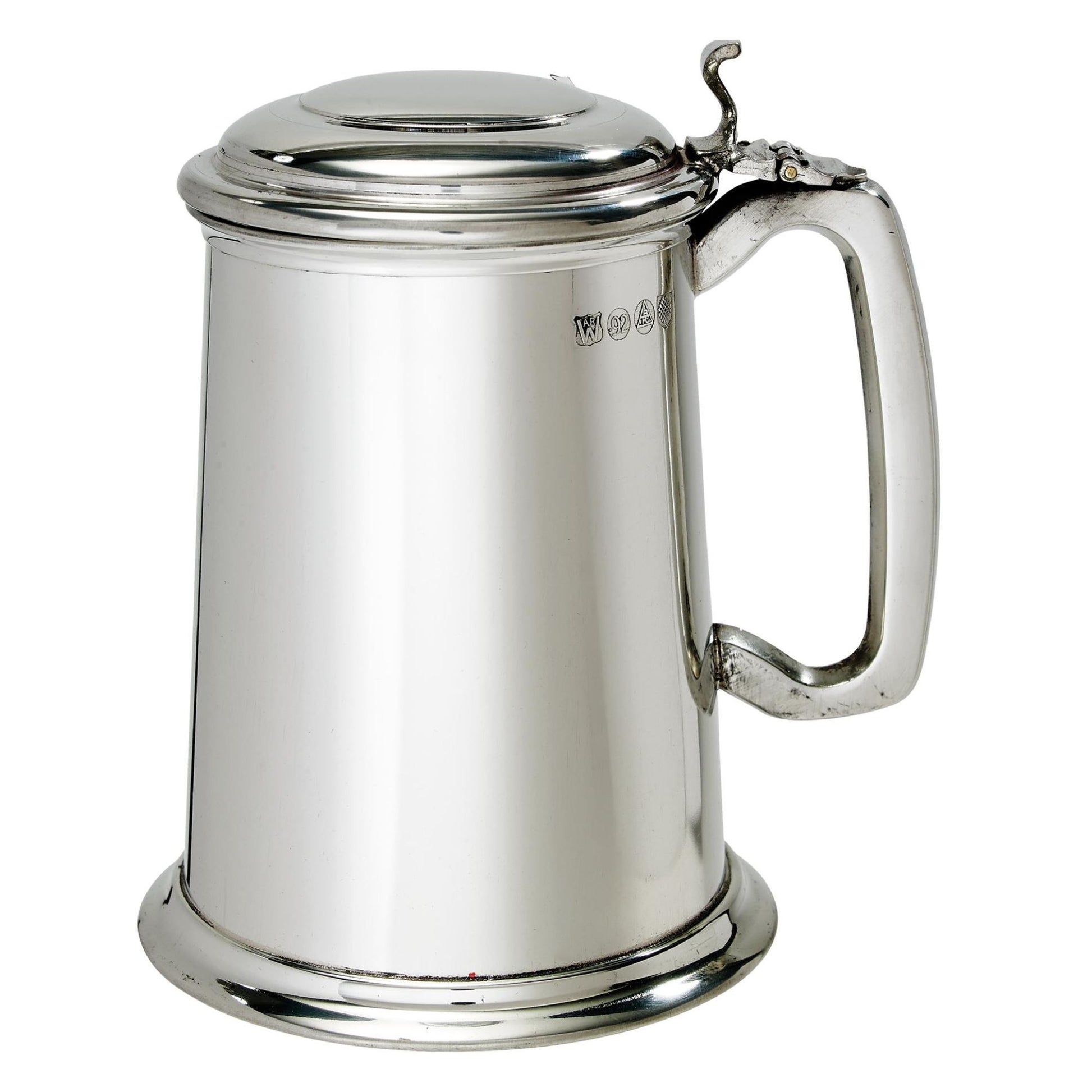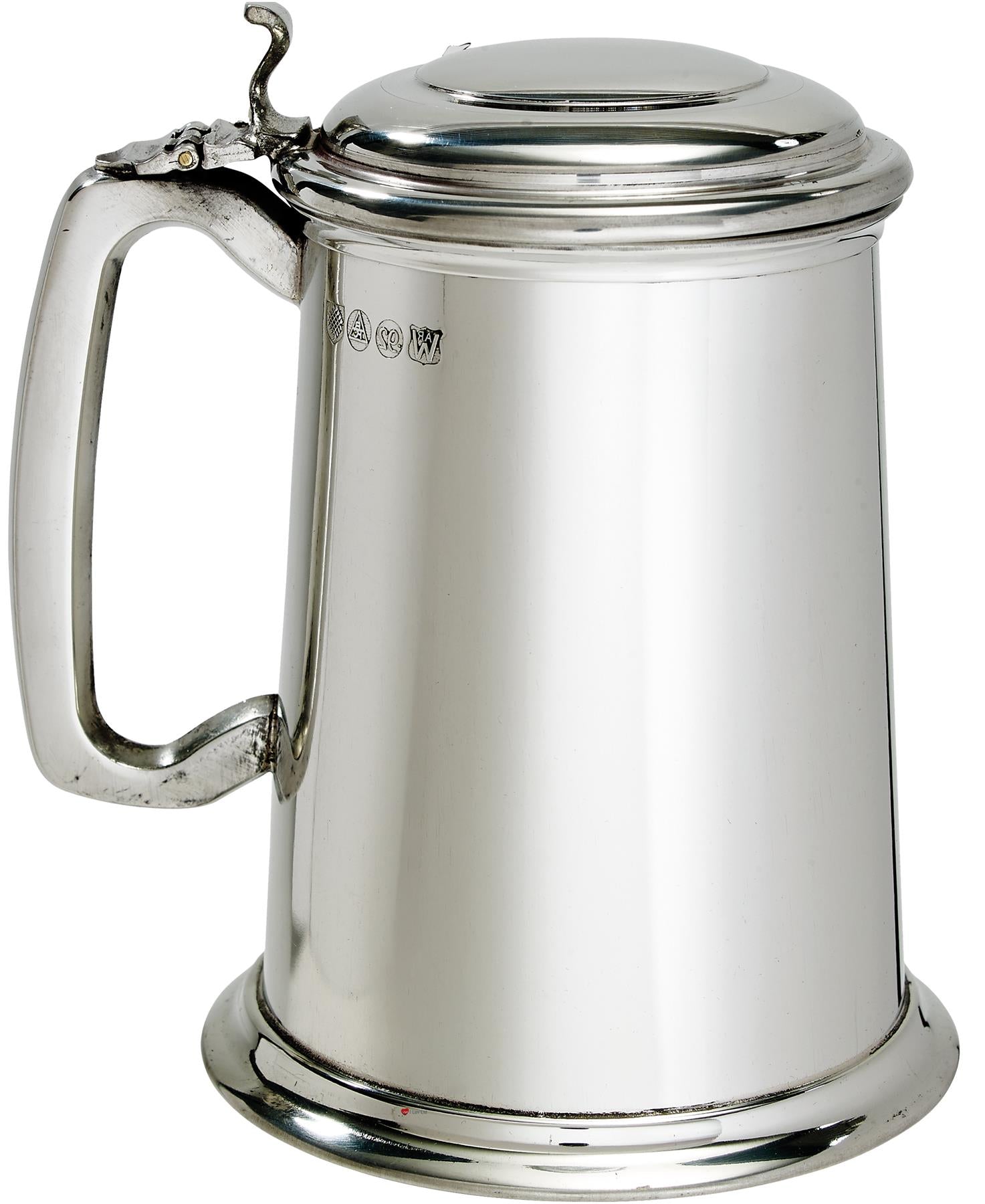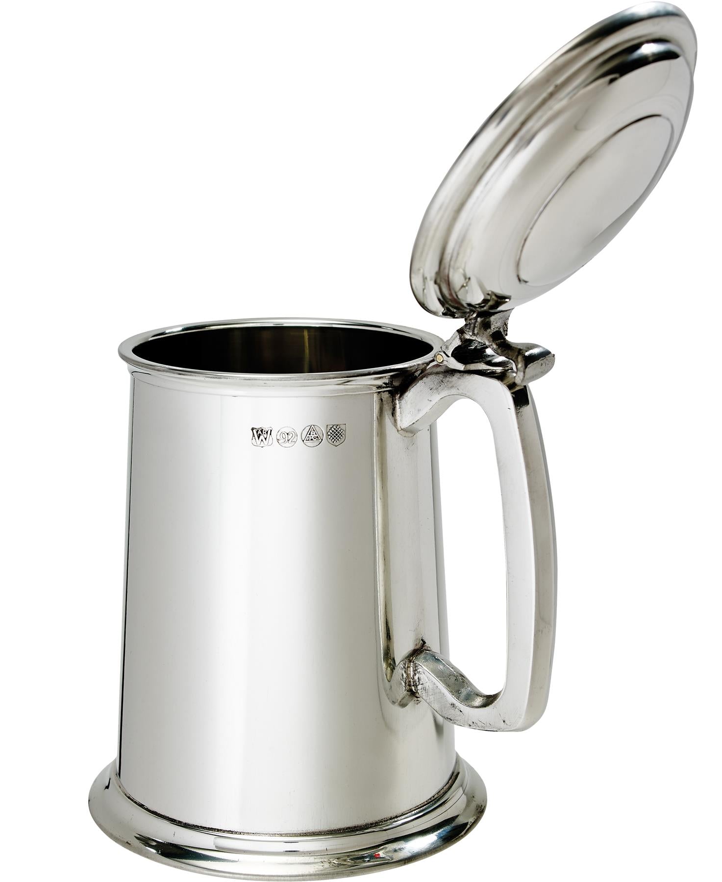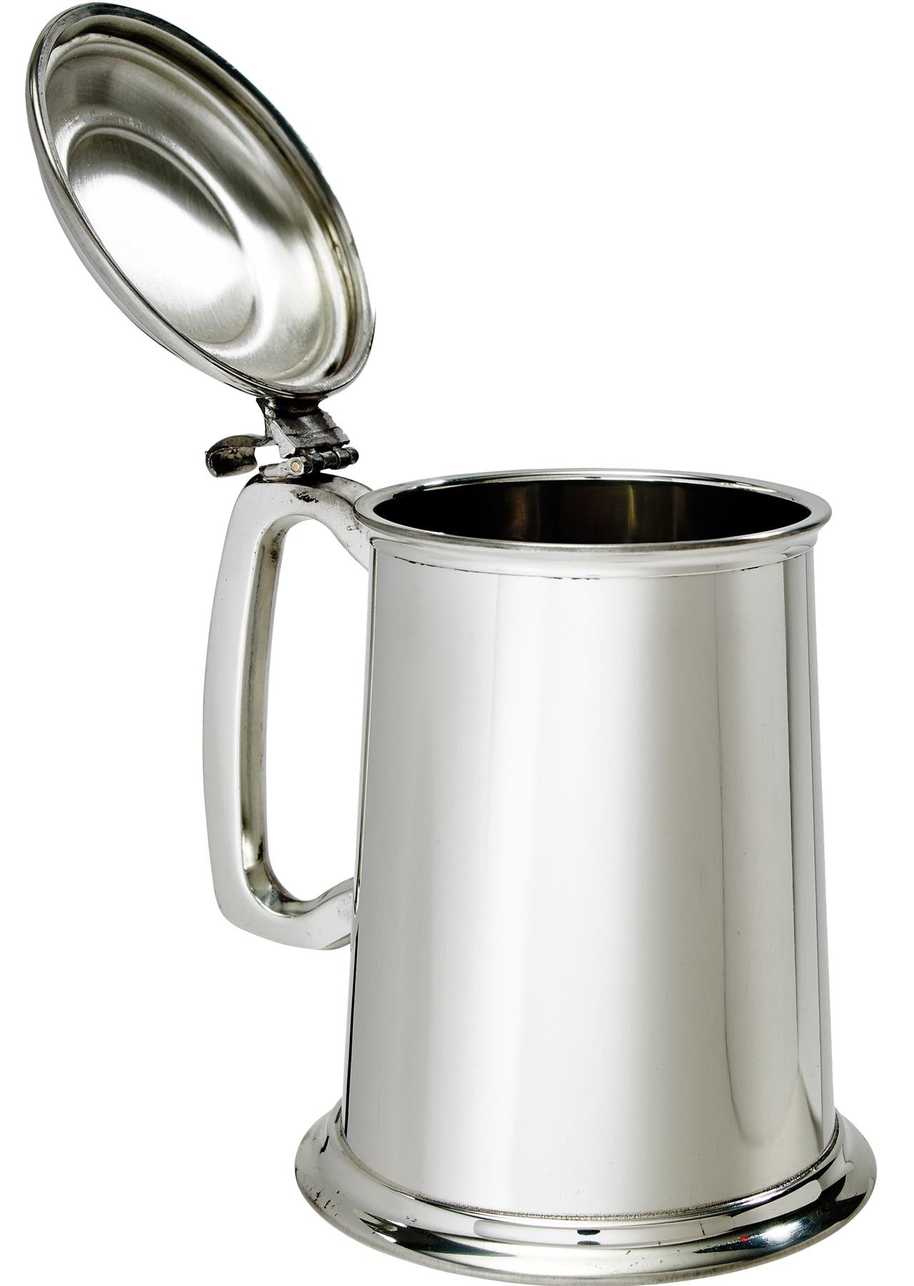 Pewter Lidded Tankard 1 Pint Polished with Touchmark Perfect for Engraving
