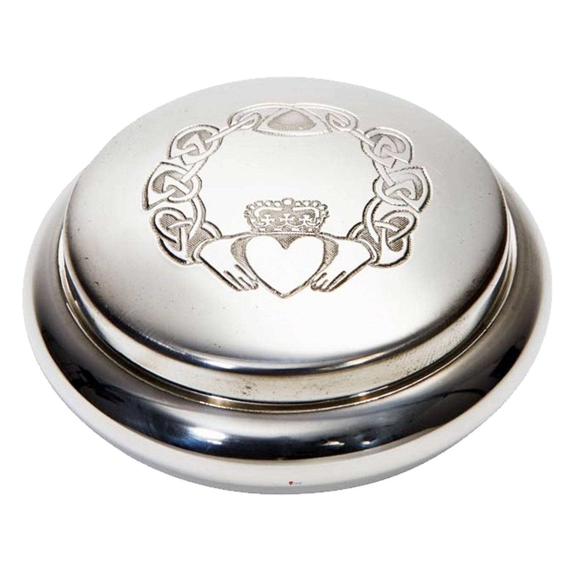 Pewter Round Trinket Box Claddagh Love and Loyalty Pattern Perfect for Engraving