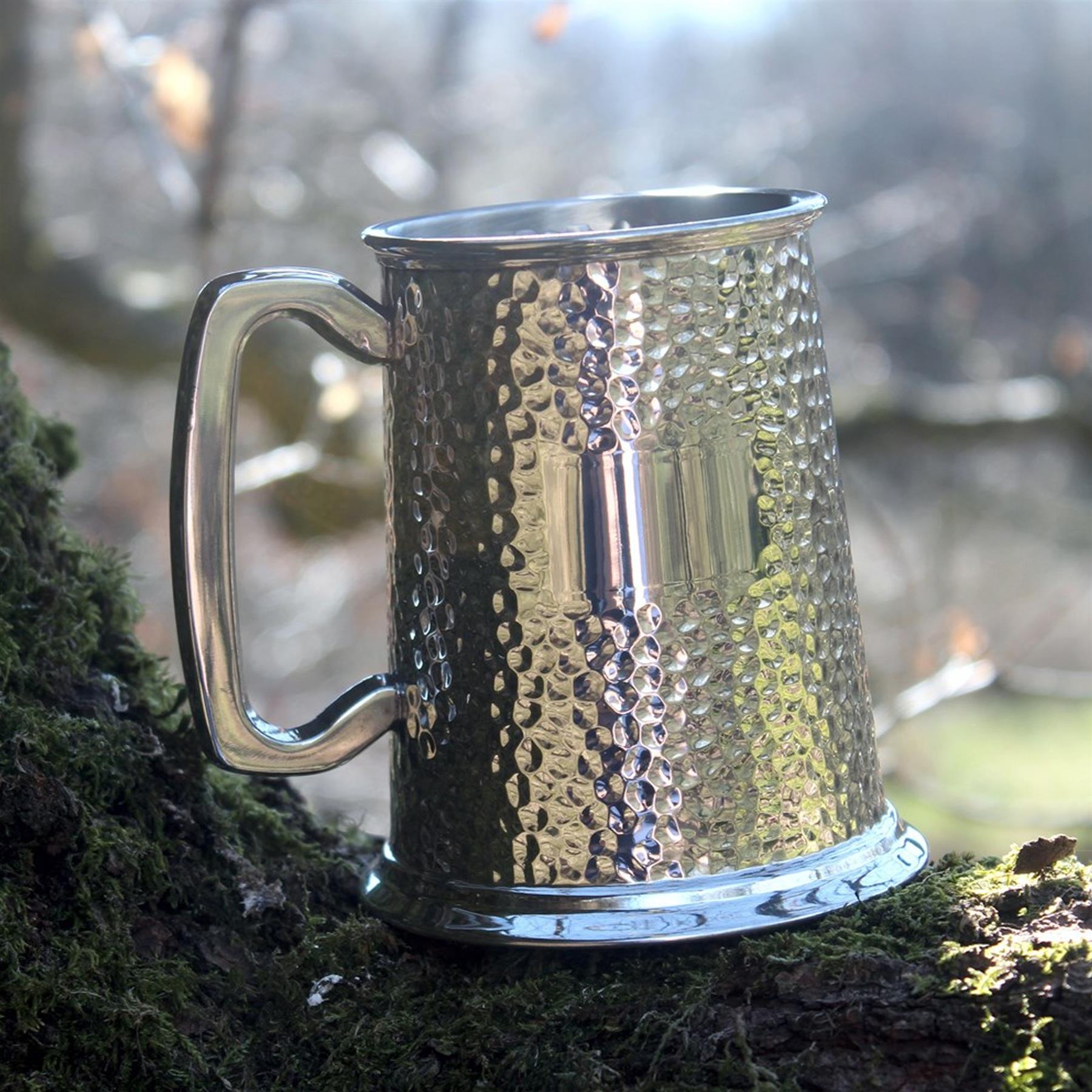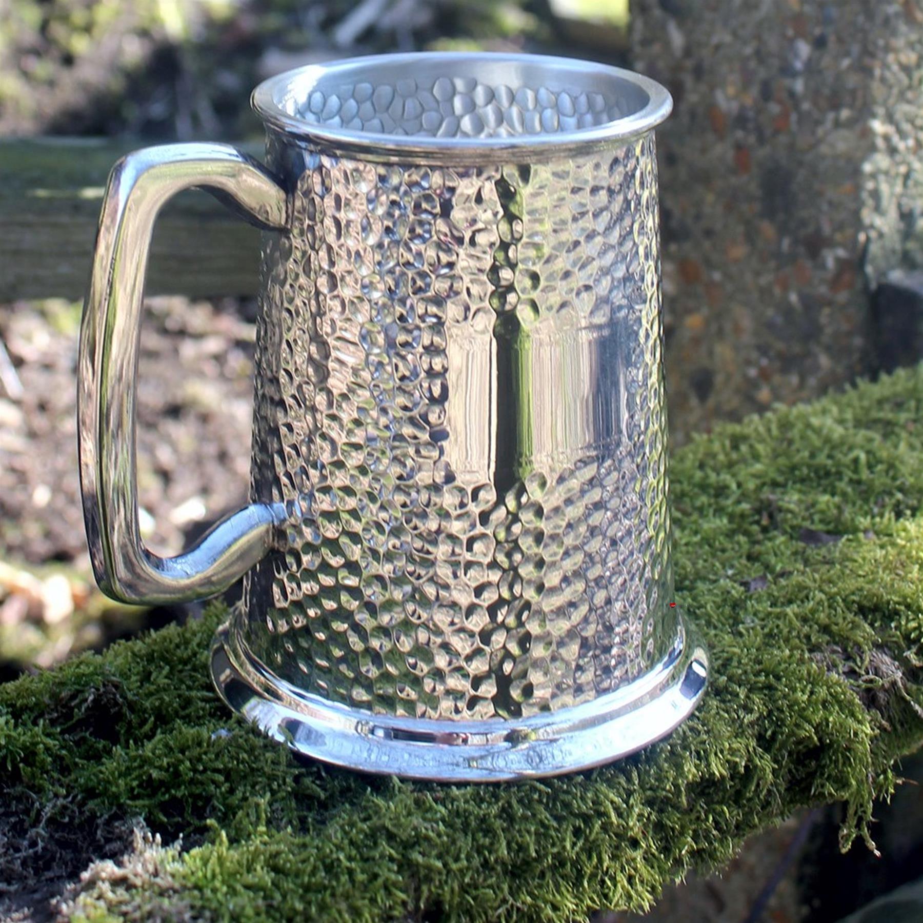 Pewter Tankard 1 Pint All Hammered Finish with Space Perfect for Engraving