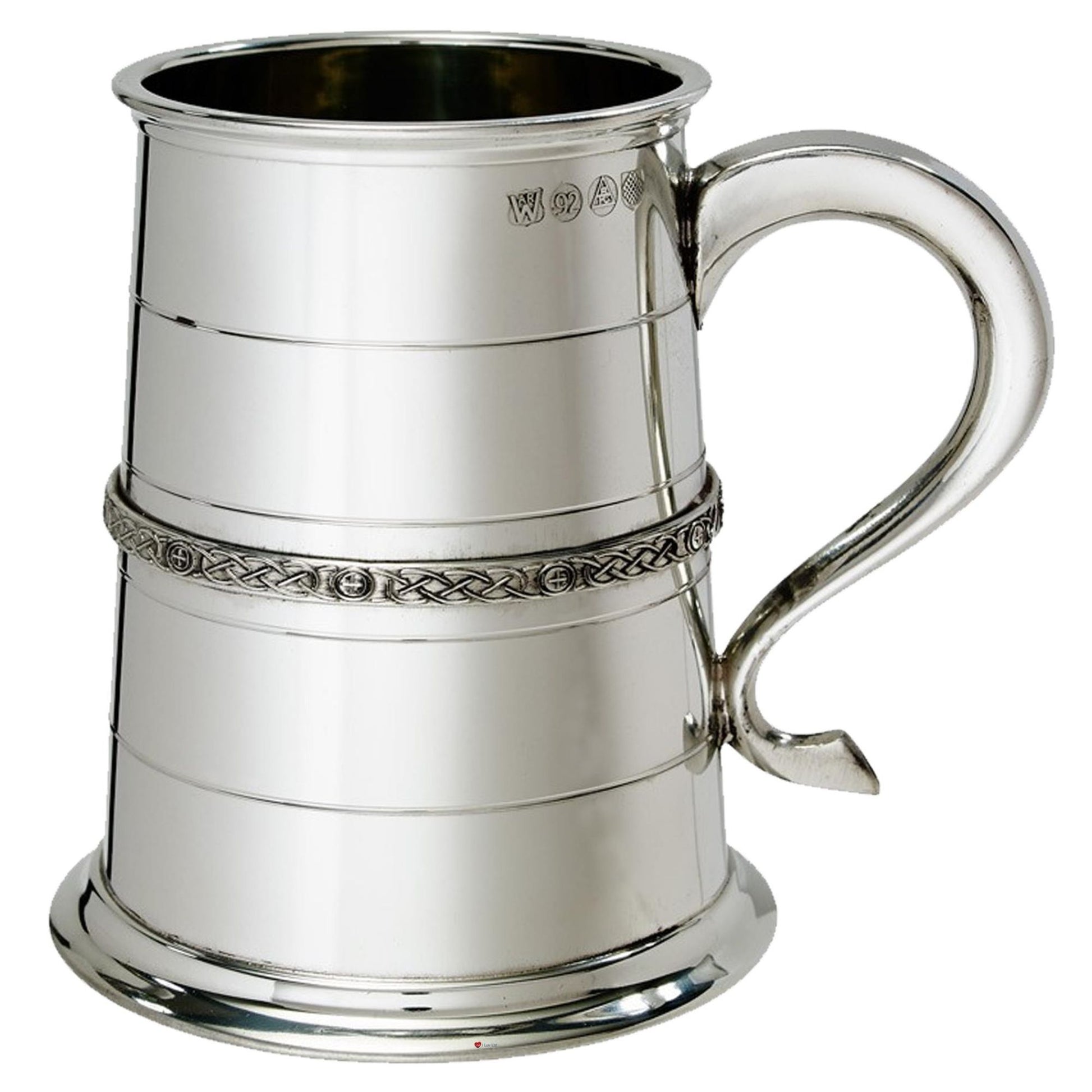 Pewter Tankard 1 Pint Lines and Celtic Band Touchmark Perfect for Engraving