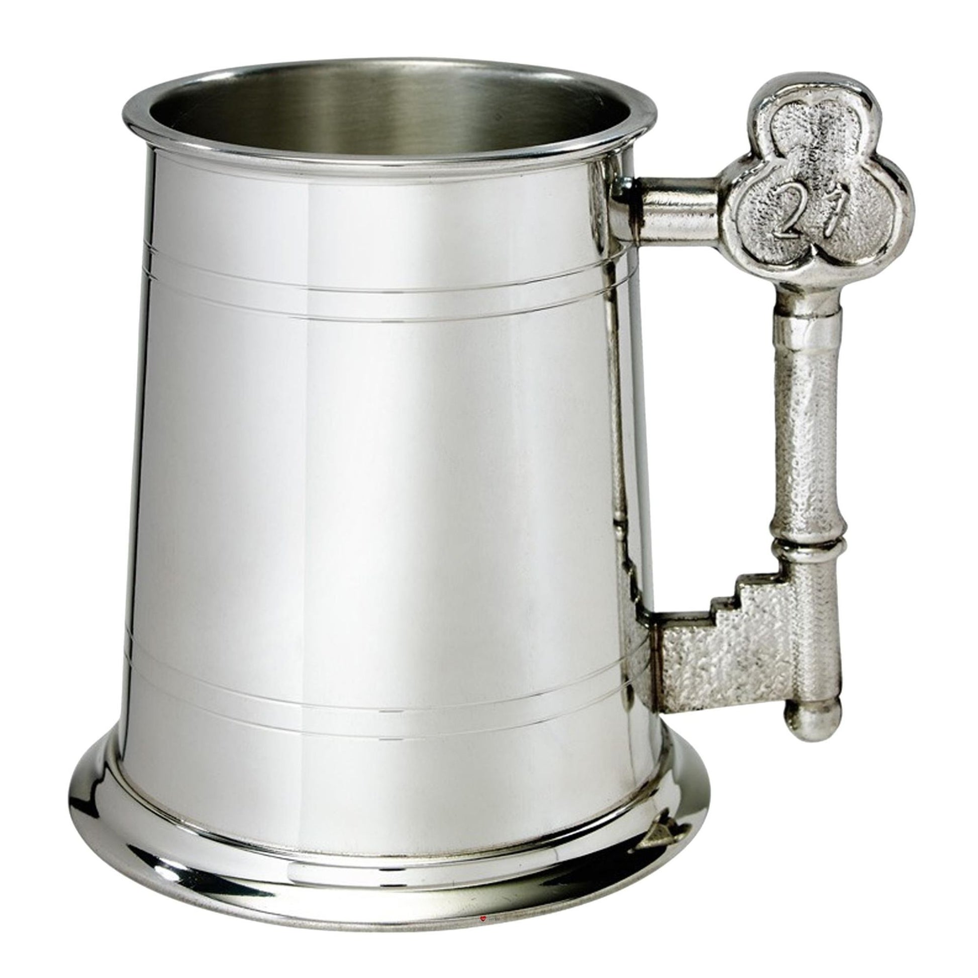 Pewter Tankard 1 Pint Plain Double Lined 21st Key Handle Perfect for Engraving
