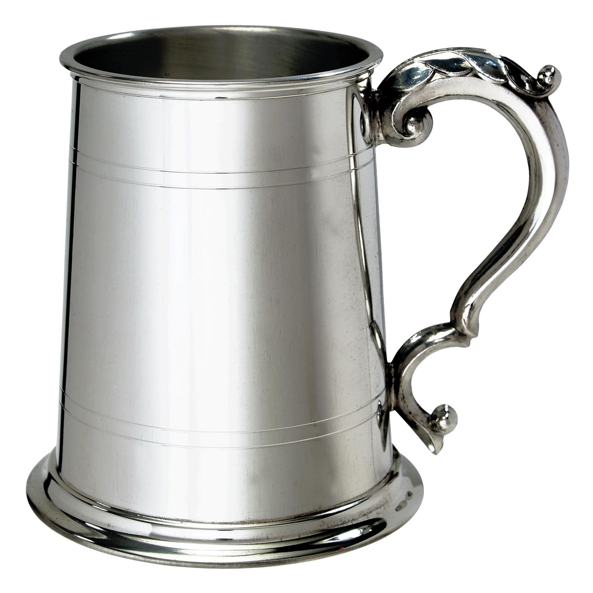 Pewter Tankard 1 Pint Plain Double Lines Antique Style Perfect for Engraving