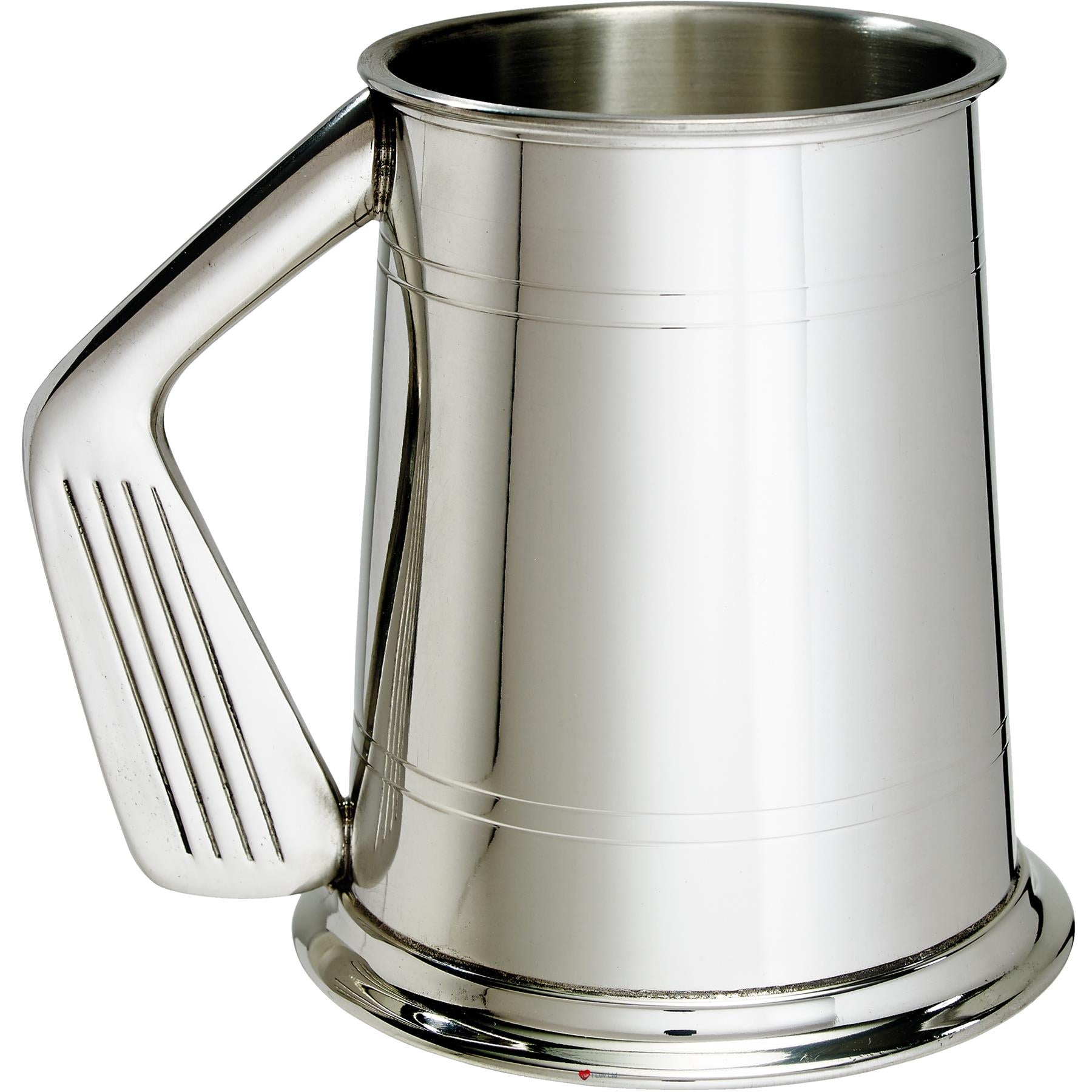 Pewter Tankard 1 Pint Plain Double Lines Golf Club Handle High-Quality Pewter