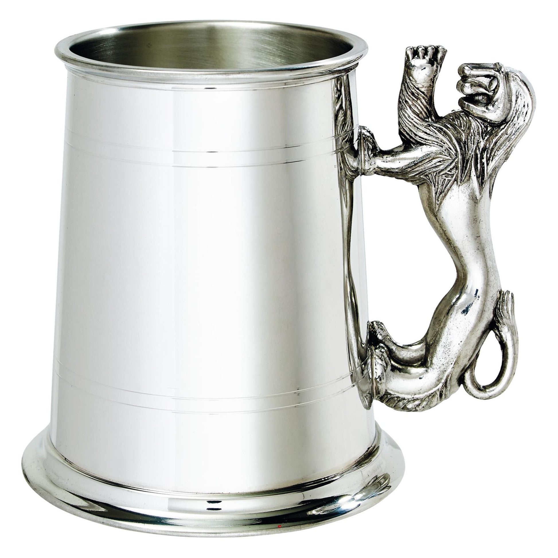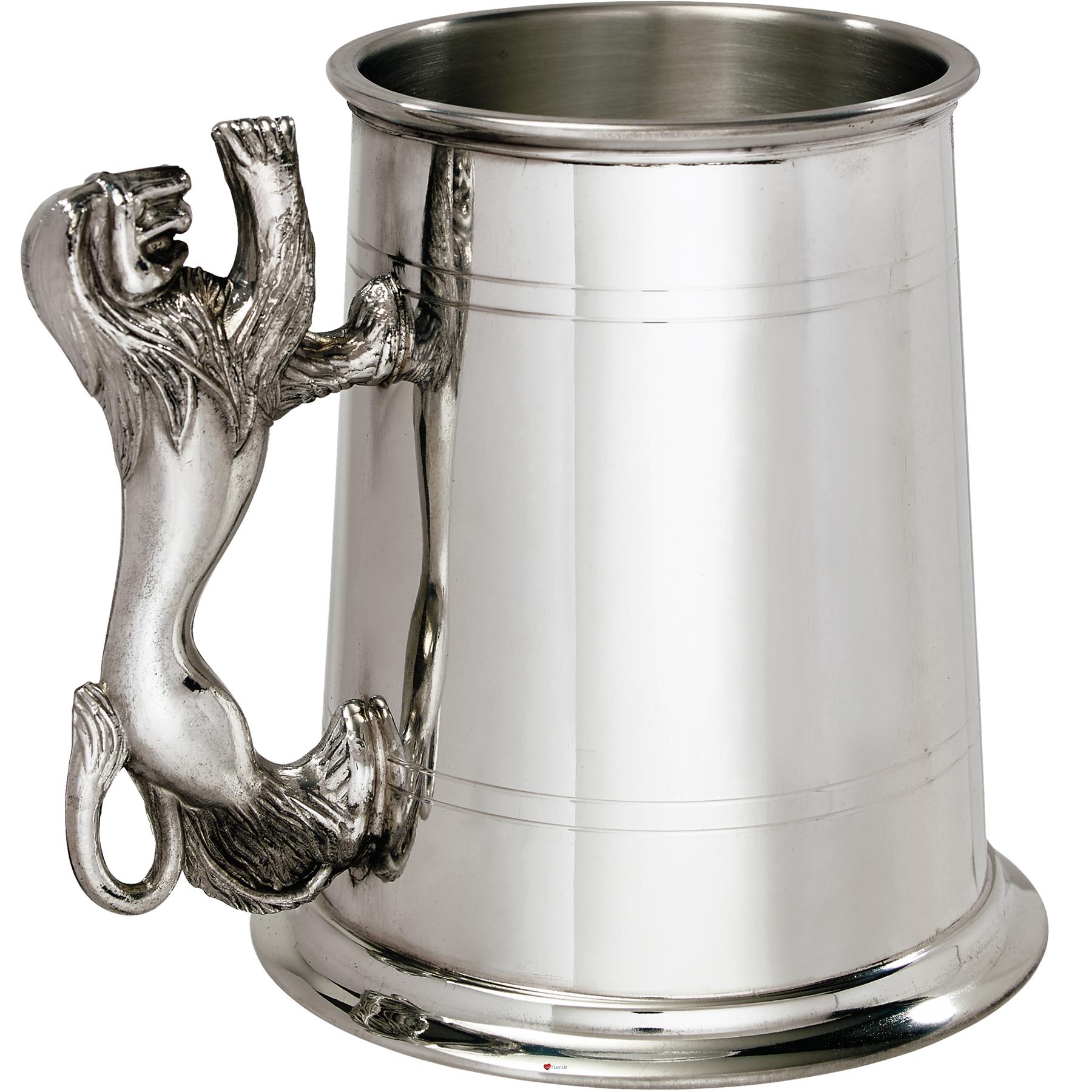 Pewter Tankard 1 Pint Plain Double Lines Lion Rampant Handle High-Quality Pewter