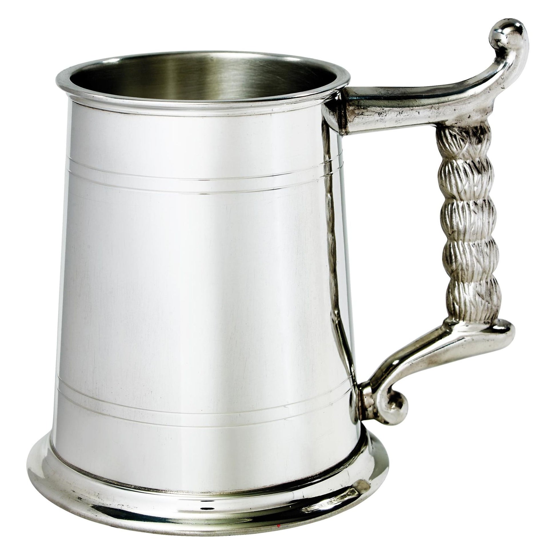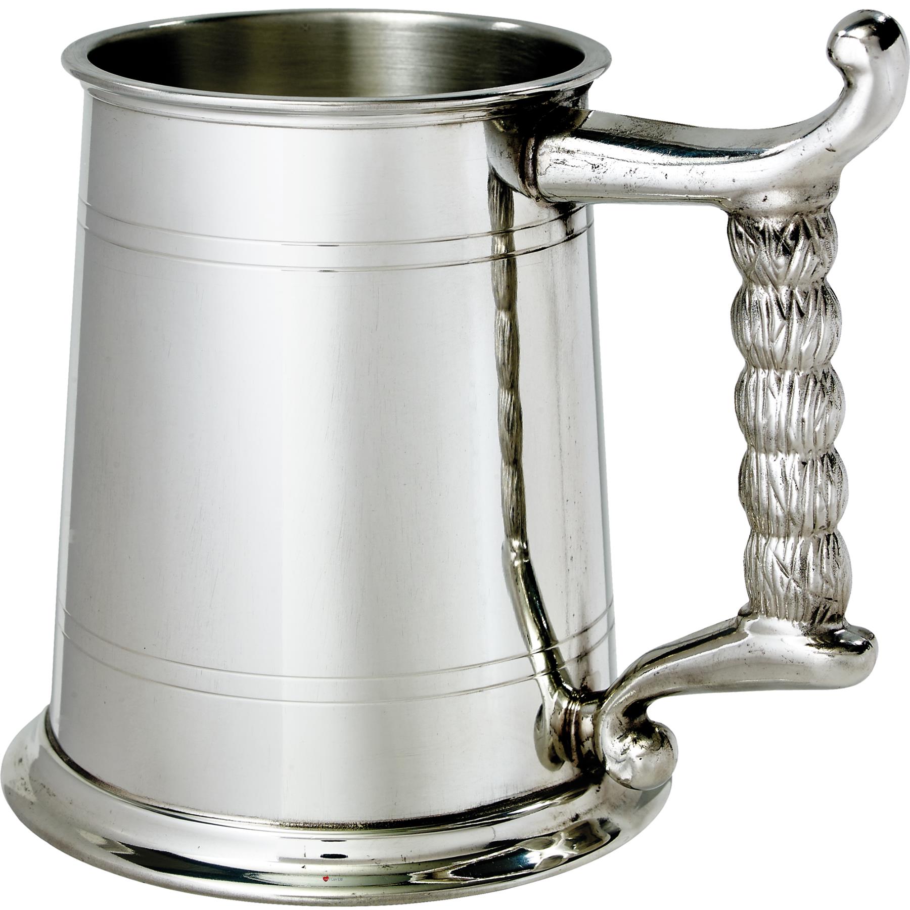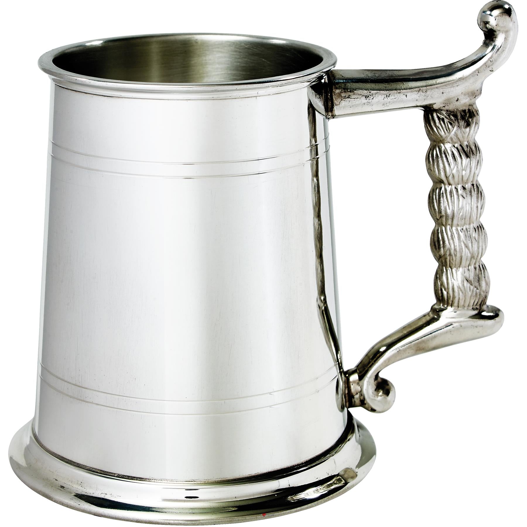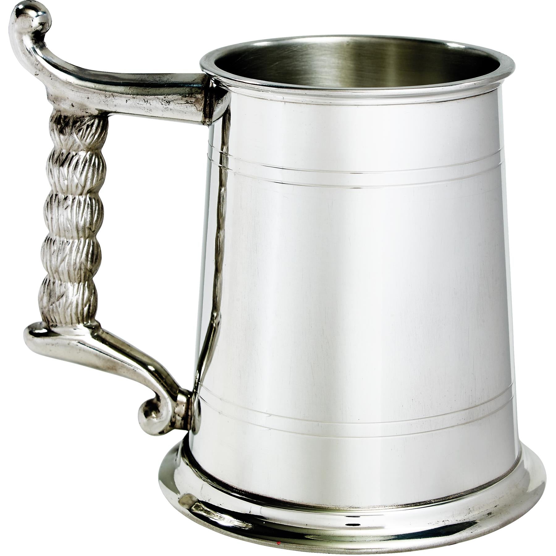 Pewter Tankard 1 Pint Plain Double Lines Rope Handle Perfect for Engraving