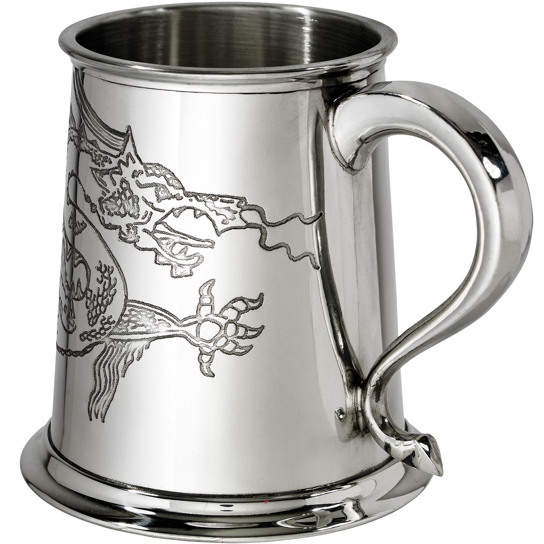 Pewter Tankard 1 Pint with Chinese Dragon and Swan Handle Perfect for Engraving