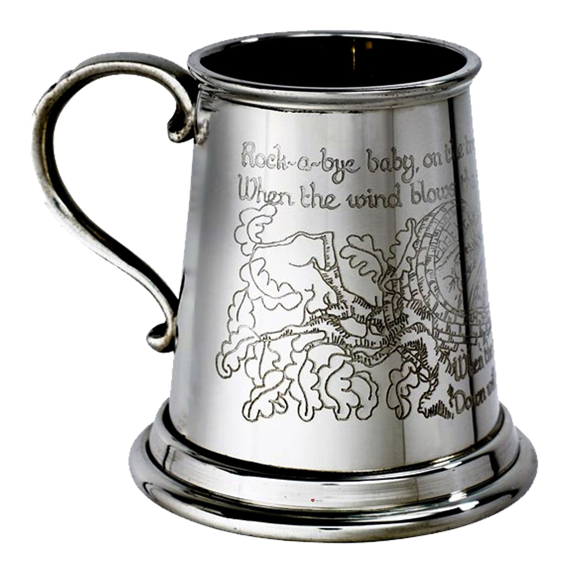 Quarter Pint Mug Rock A Bye Baby Christening Gift Pewter Tankard Scroll Handle
