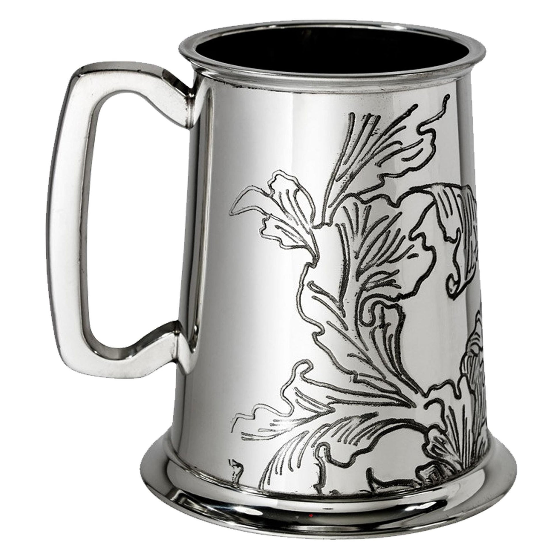 Tankard 1 Pint Acanthus Leaf Pattern Square Handle Acanthus Pattern